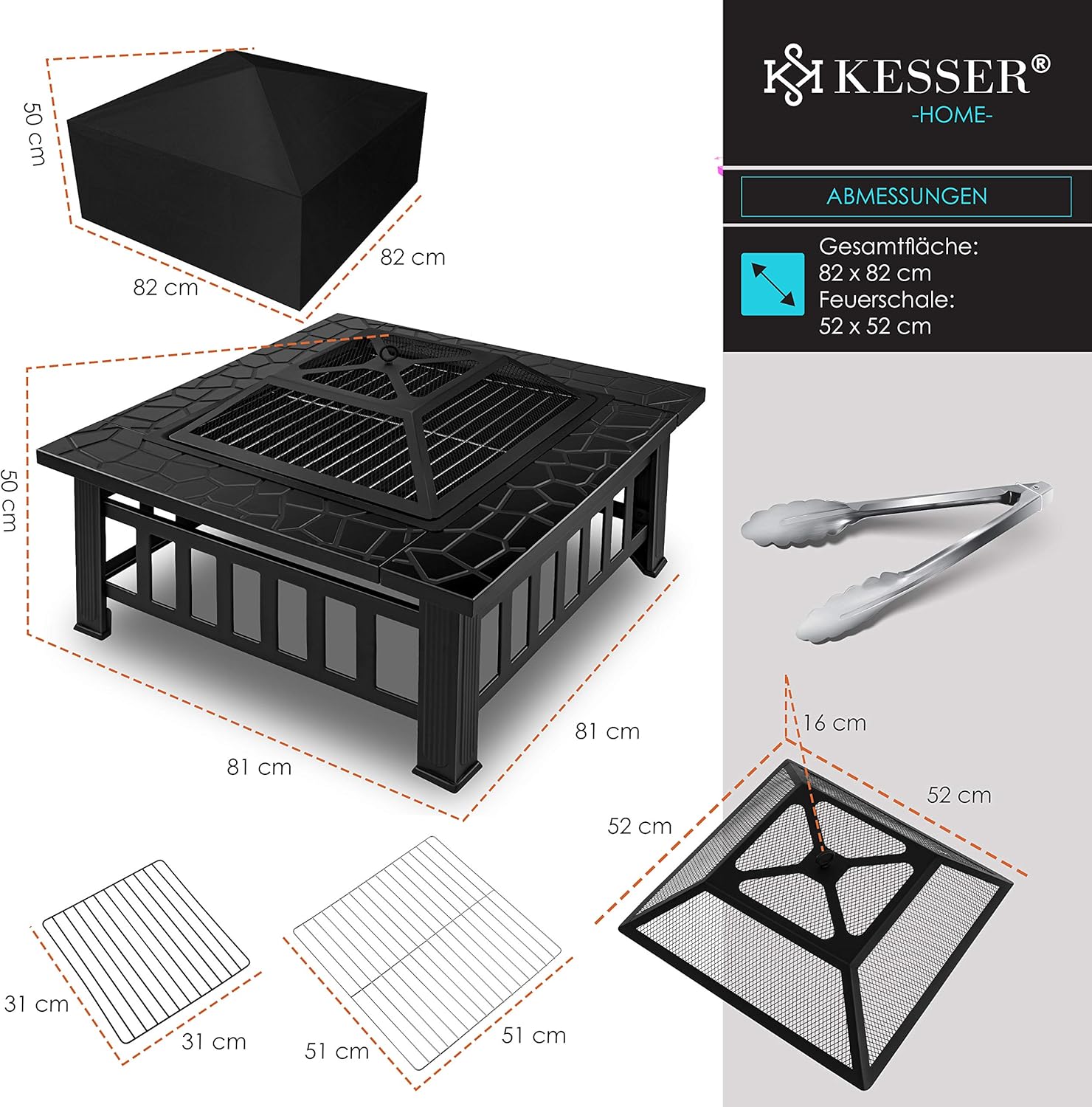 Gewicht: 12,5 kg. Materiaal: IJzerAfmetingen: Haard met grillrooster 81 x 81 x 45 cm. Totale afmetingen: 82 x 82 cm. Hoogte: 50 cm, hittebestendig tot 500 °C