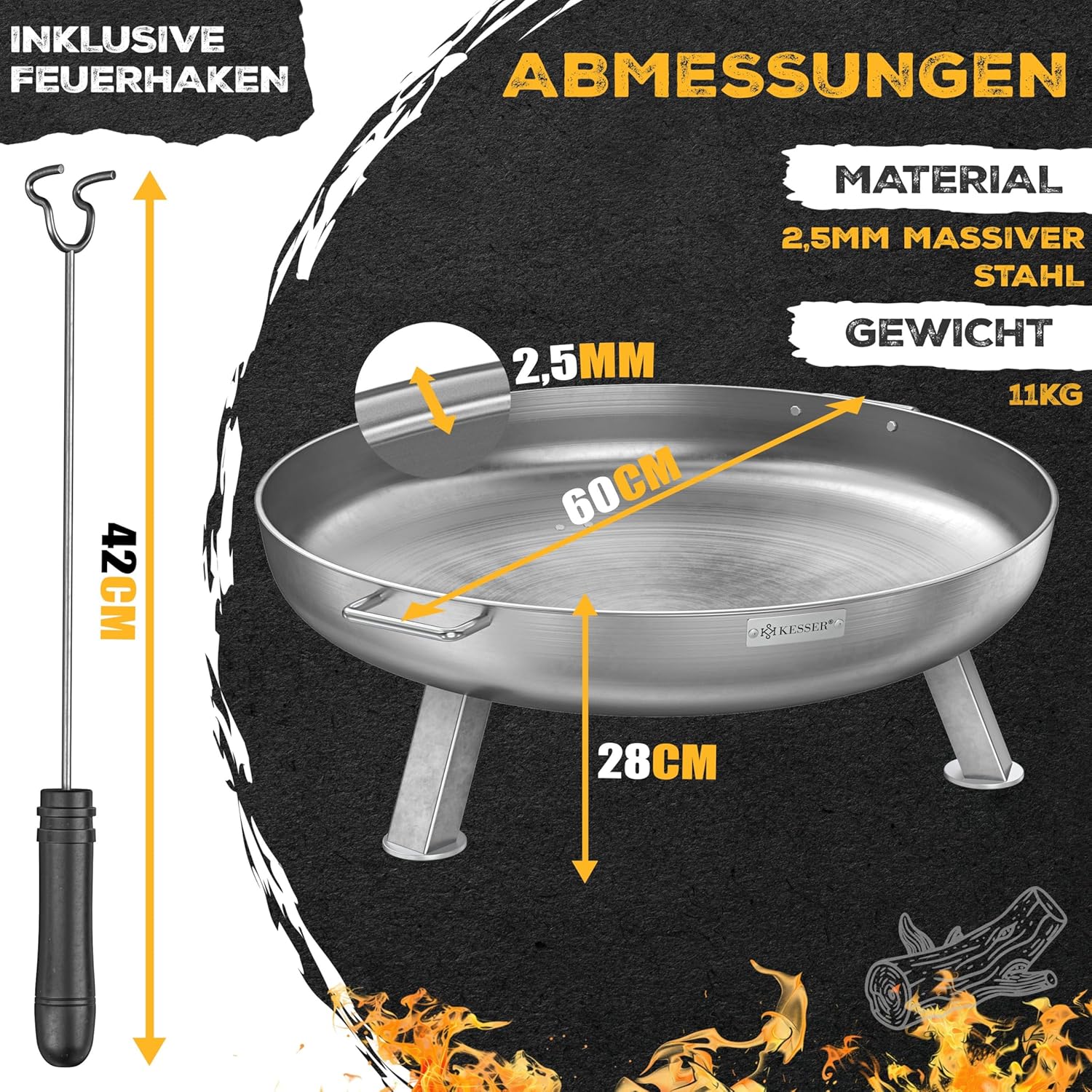 • Robuust en duurzaam: gemaakt van 2,5 mm massief staal, garandeert onze extreem hittebestendige vuurschaal duurzame stabiliteit, ook bij intensief gebruik. De stevige constructie met 28 cm hoogte en robuuste poten zorgt voor een veilige stand op elke ondergrond. Het tijdloze design maakt de vuurschaal tot een aantrekkelijke blikvanger in je buitenruimte en creëert een uitnodigende sfeer voor onvergetelijke avonden met familie en vrienden.
