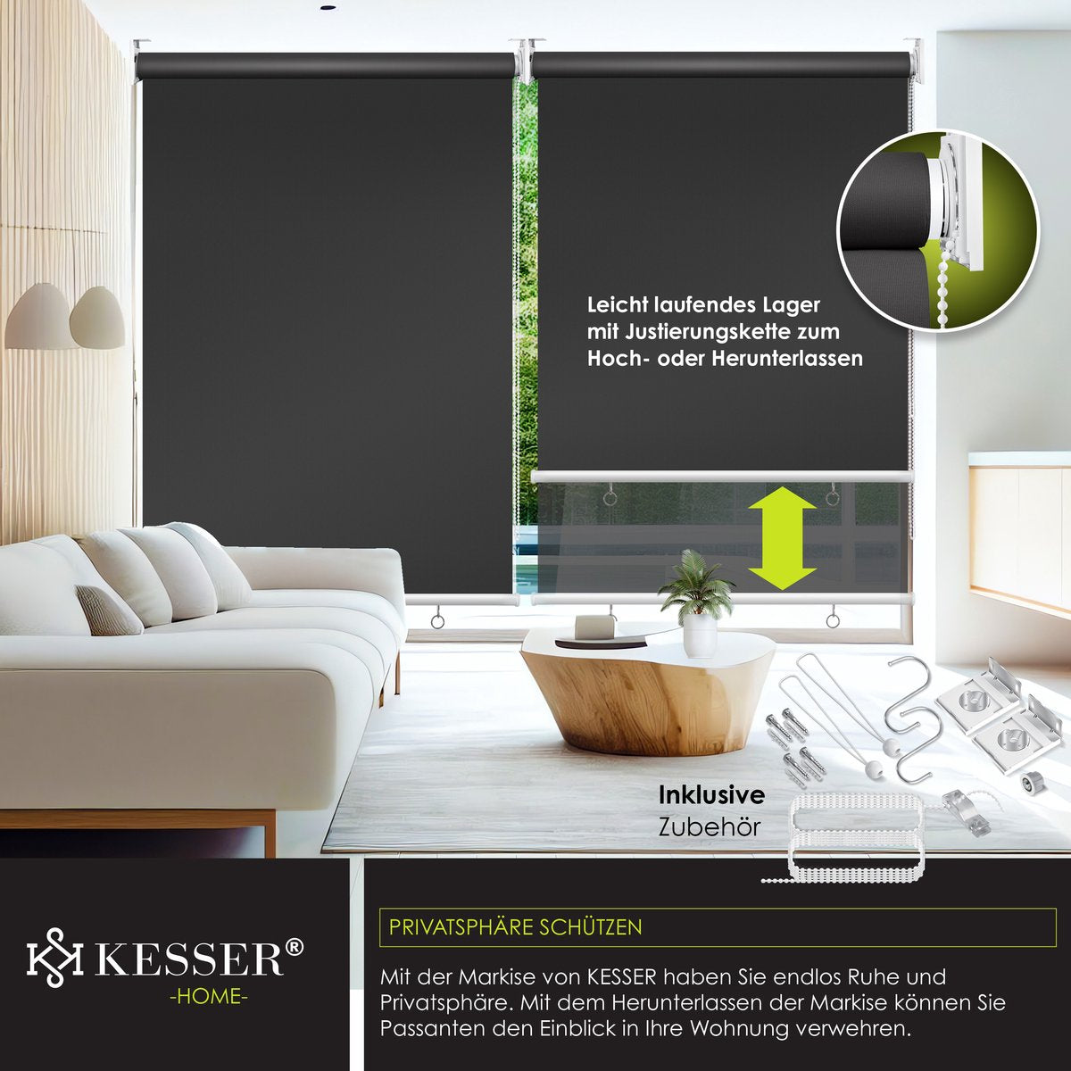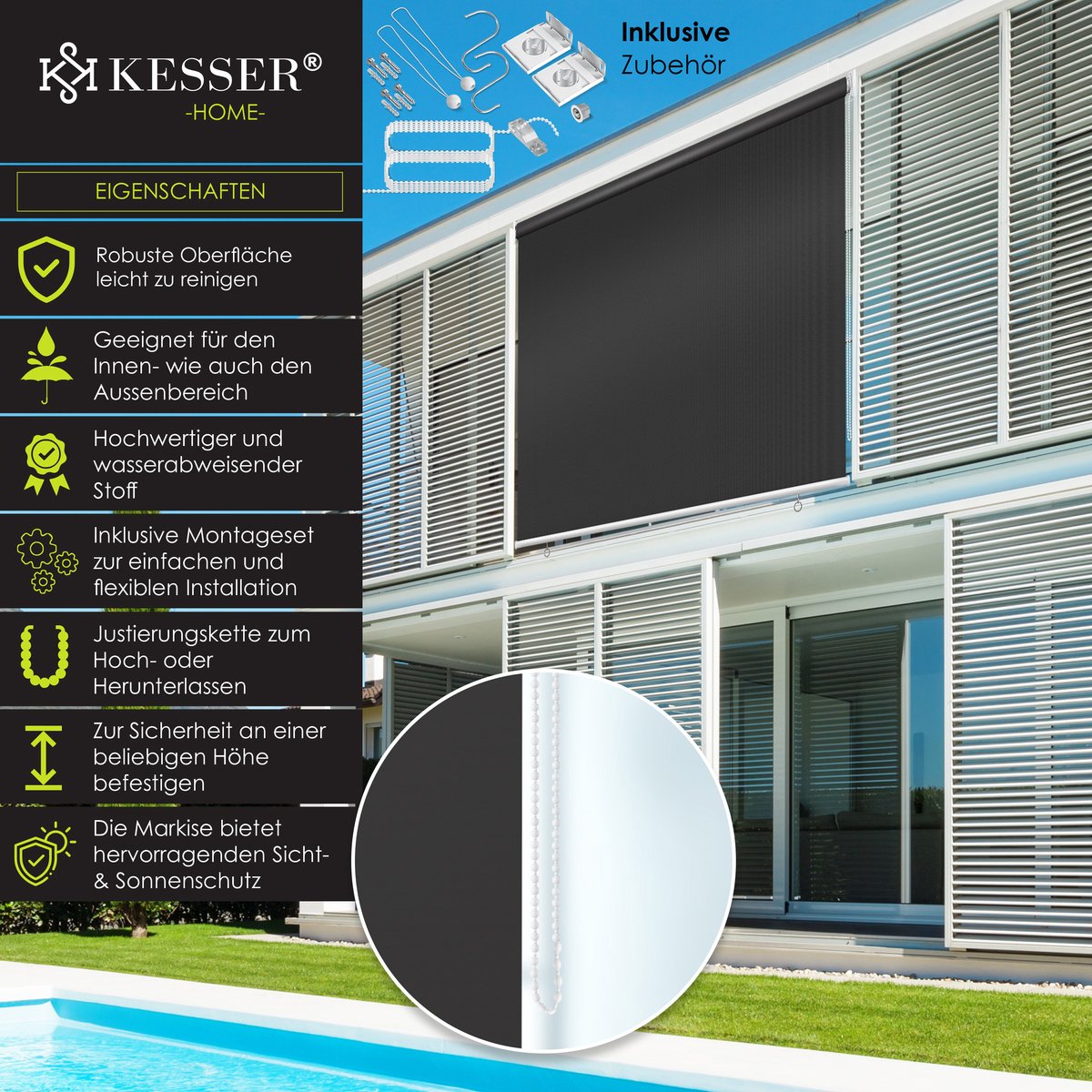 KESSER verticale zonwering Basic het waterdichte doek garandeert een lange levensduur, geschikt voor zowel binnen als buiten dankzij de snelle en eenvoudige reinigingsmogelijkheid, inclusief montagehandleiding voor eenvoudige en flexibele installatie