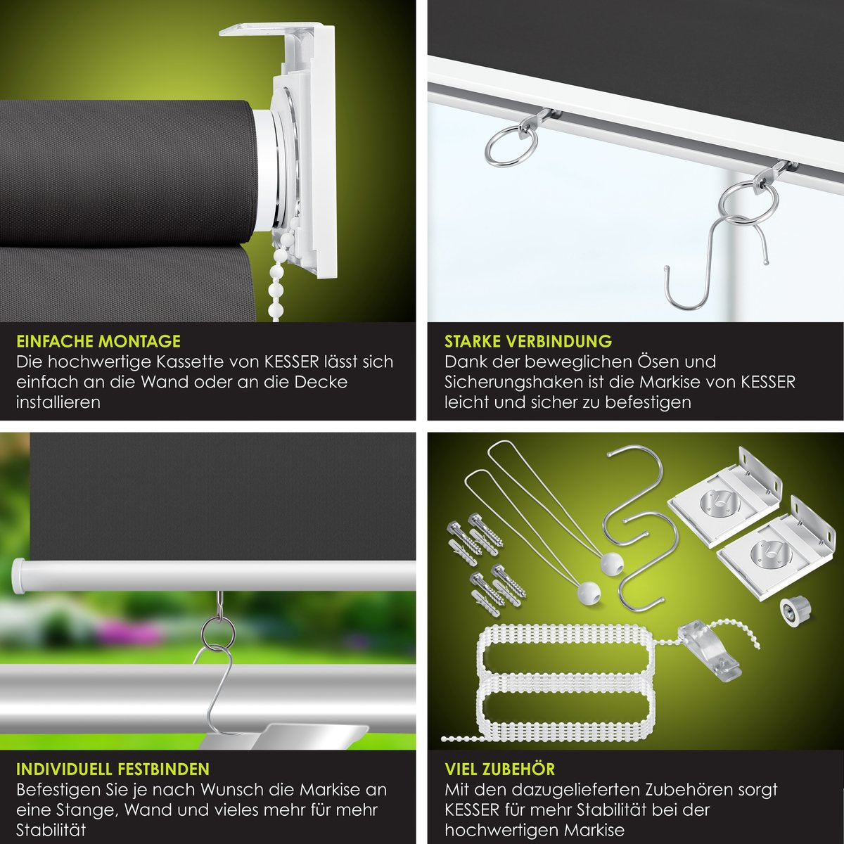 De balkonzonwering van KESSER is snel en veelzijdig dankzij de eenvoudige en flexibele montage.