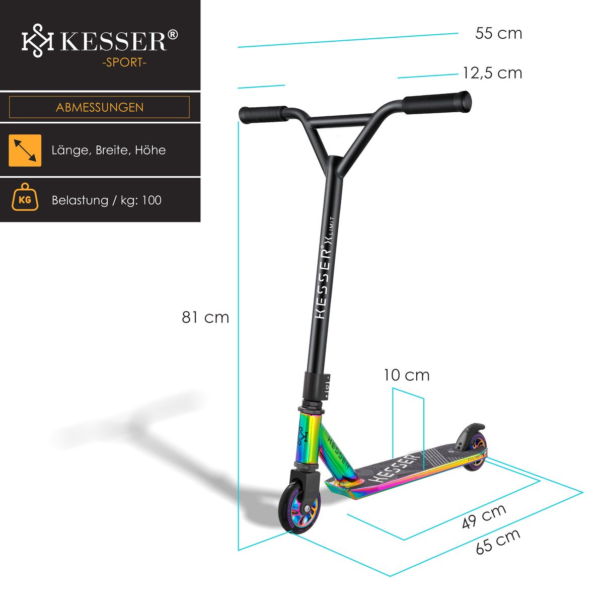 KESSER® Step Scooter Trick Scooter X-Limit - 360° Sturing met ABEC 9 Kogellagers 100 mm PU Wielen Robuuste Step City Scooter Trick Scooter voor Kinderen en Volwassenen
