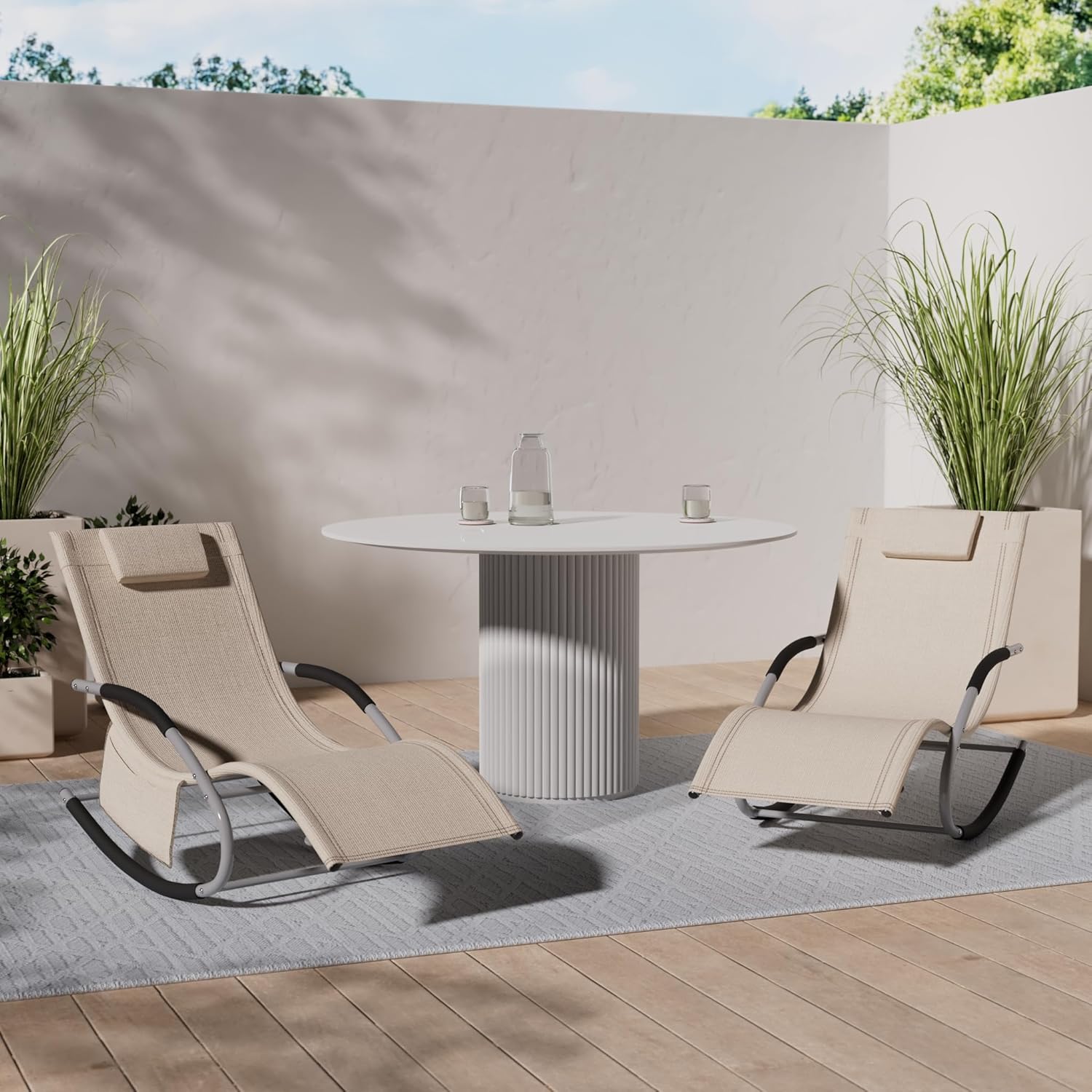 • ✔ Eenvoudig op te bouwen: Eenvoudig te monteren ligstoel met afneembaar hoofdkussen voor ontspannen momenten onder een blauwe hemel – de armleuningen zorgen voor extra comfort.