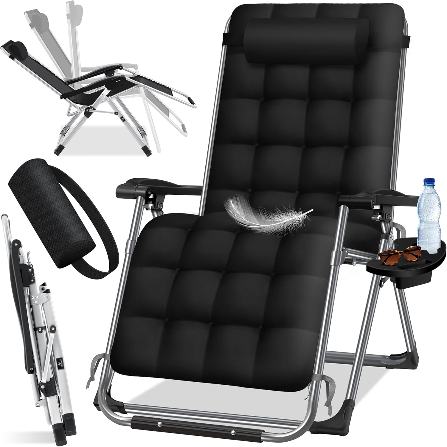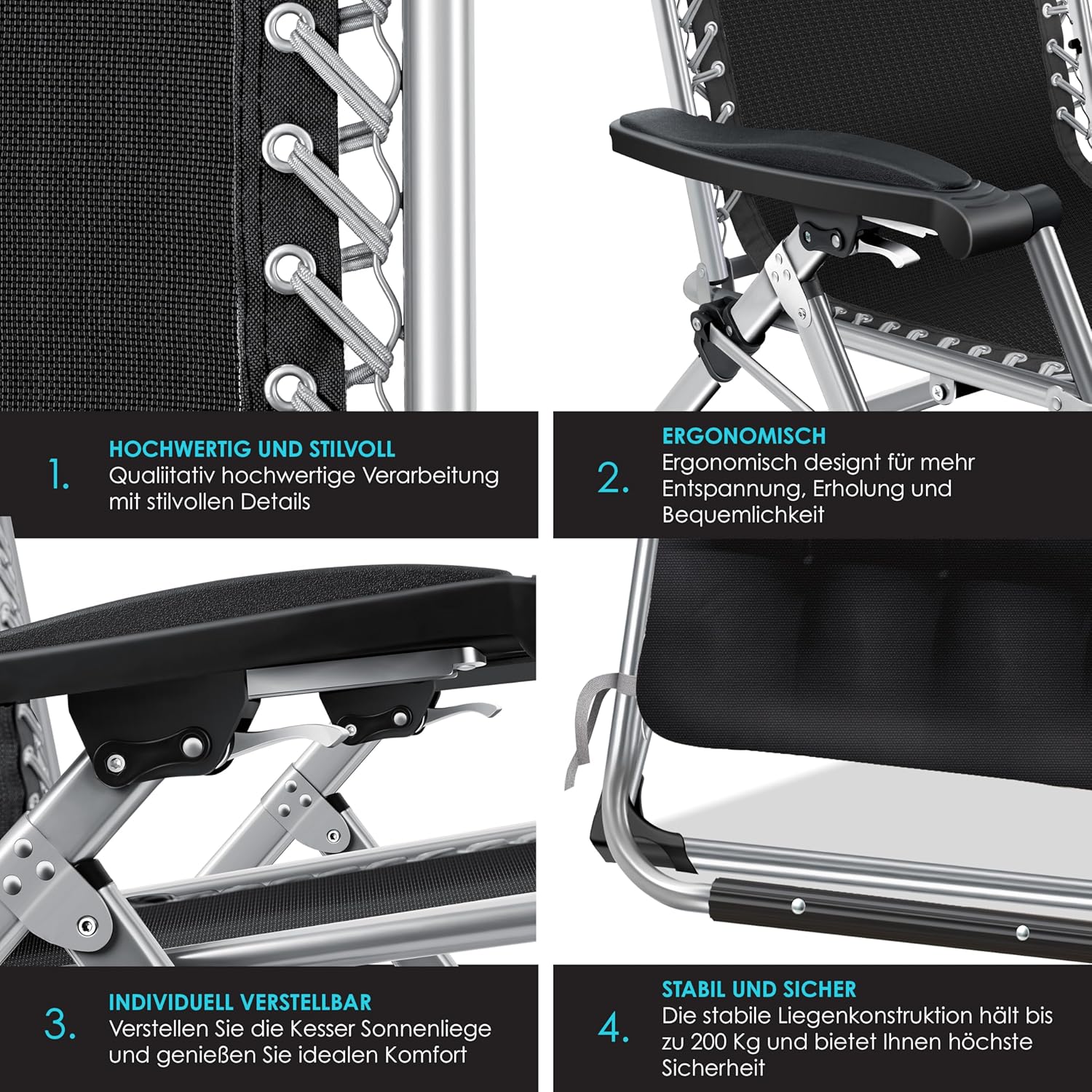 Geniet van de"Zero Gravity" positie en voel je gewichtloos en bevrijd van alle zorgen na een lange werkdag.Met de comfortabele en verstelbare bekleding kun je onbeperkt ontspannen en de positie van het ligbed op elk moment aanpassen.Leun tegen het comfortabele kussen en leg je voeten omhoog.Een geïntegreerde opbergtafel biedt genoeg ruimte voor drankjes, je smartphone of andere kleine voorwerpen.