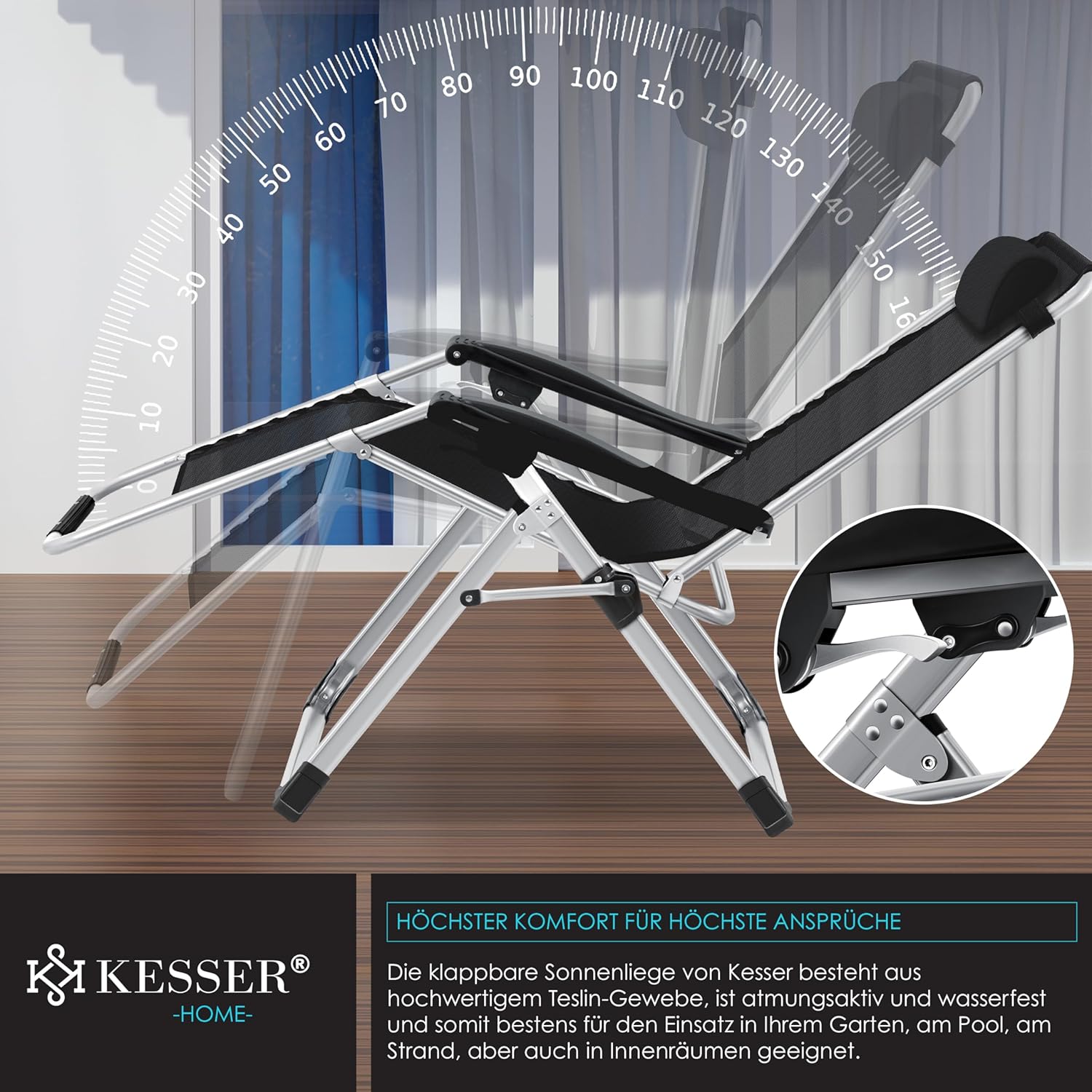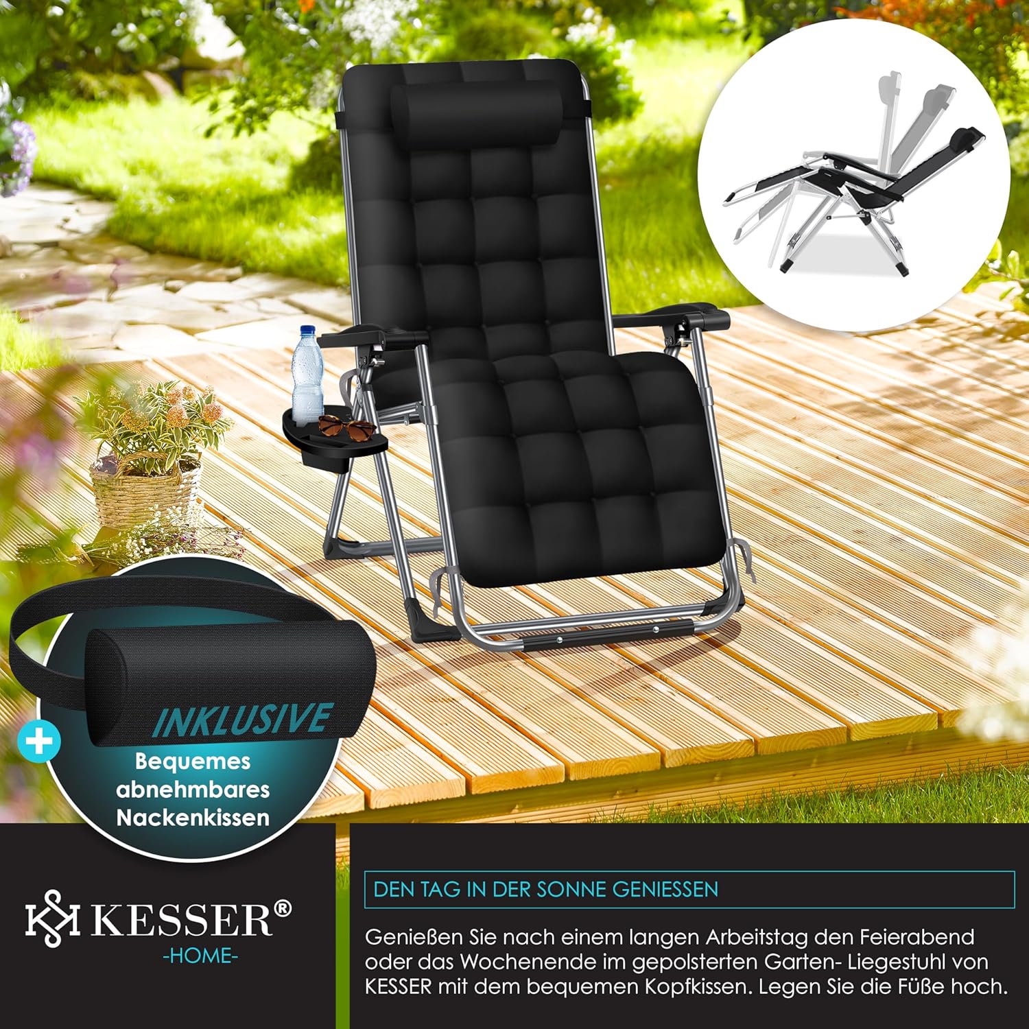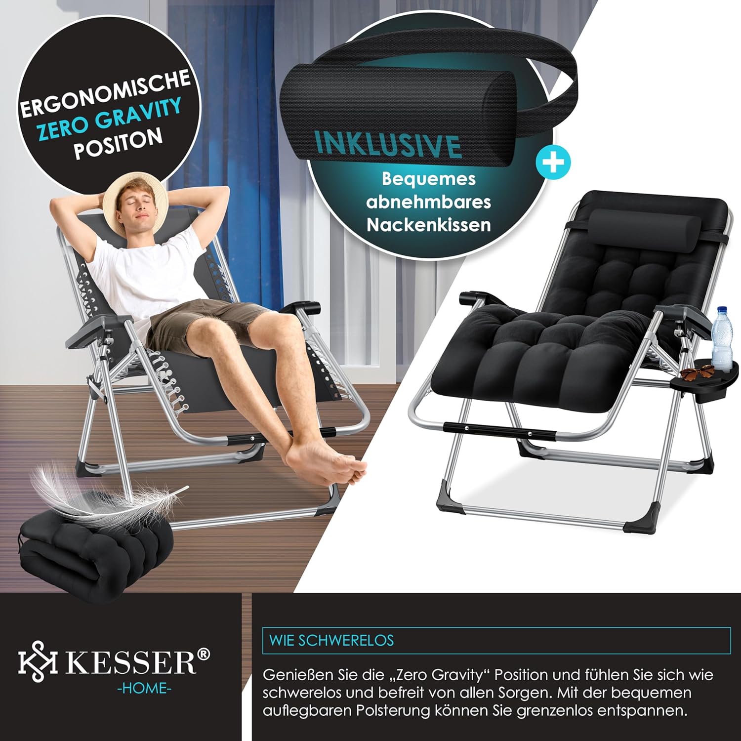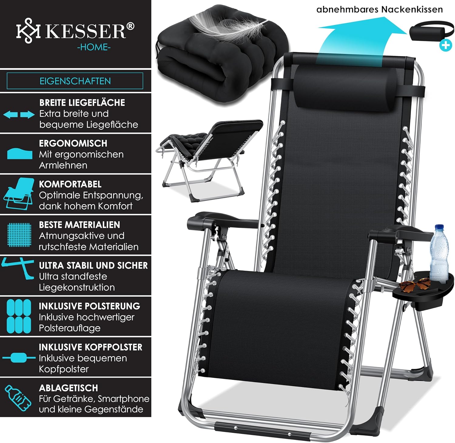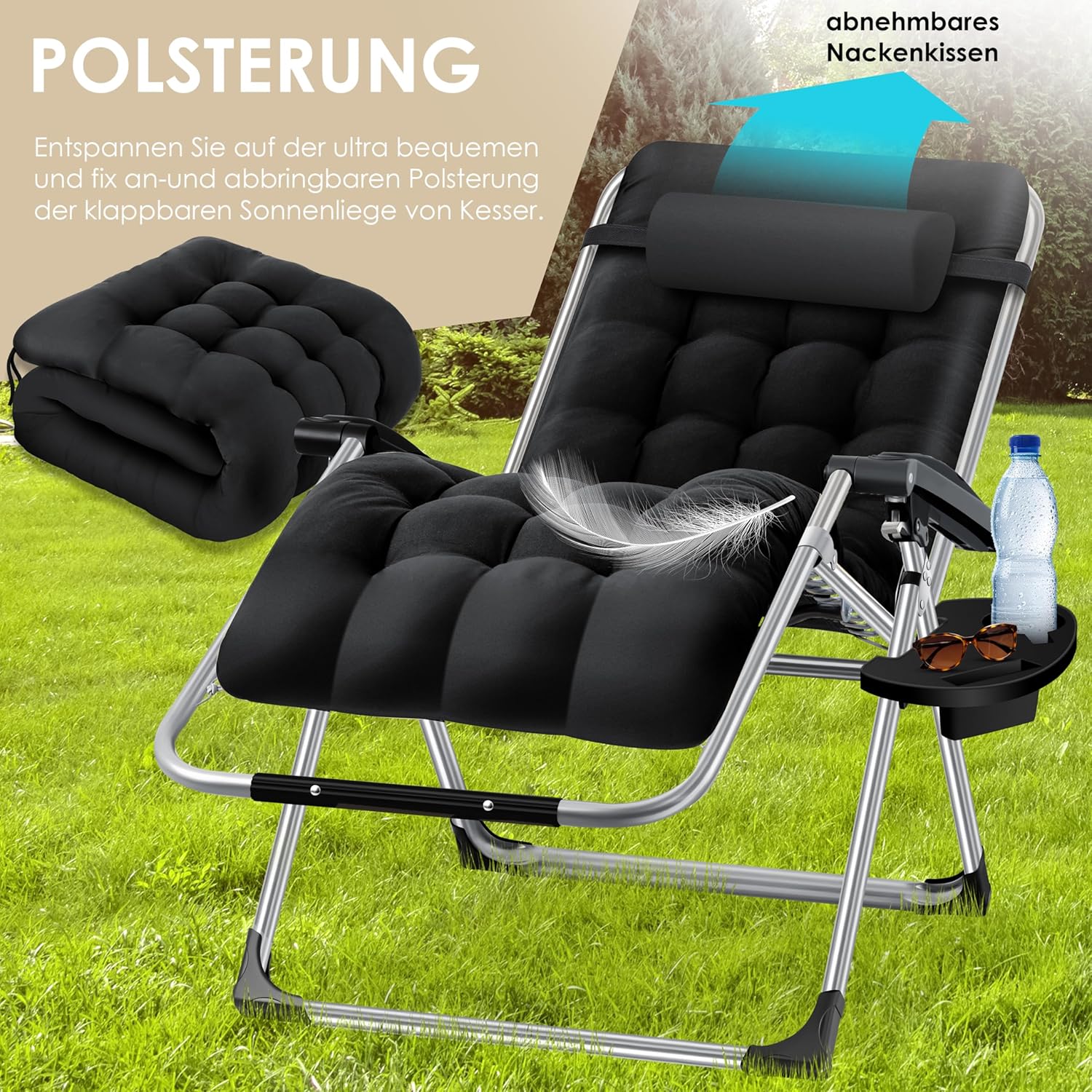 KESSER ligstoel met hoogwaardige bekleding, extra breed en comfortabel ligoppervlak met ergonomische armleuningen, ademend en antislip materiaal, incl. comfortabele hoofdkussens, ultrastabiele ligstoelconstructie, geïntegreerde opbergtafel.