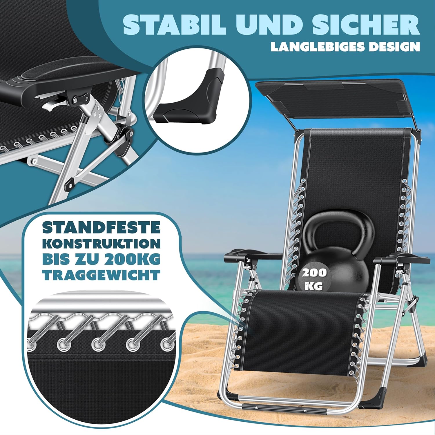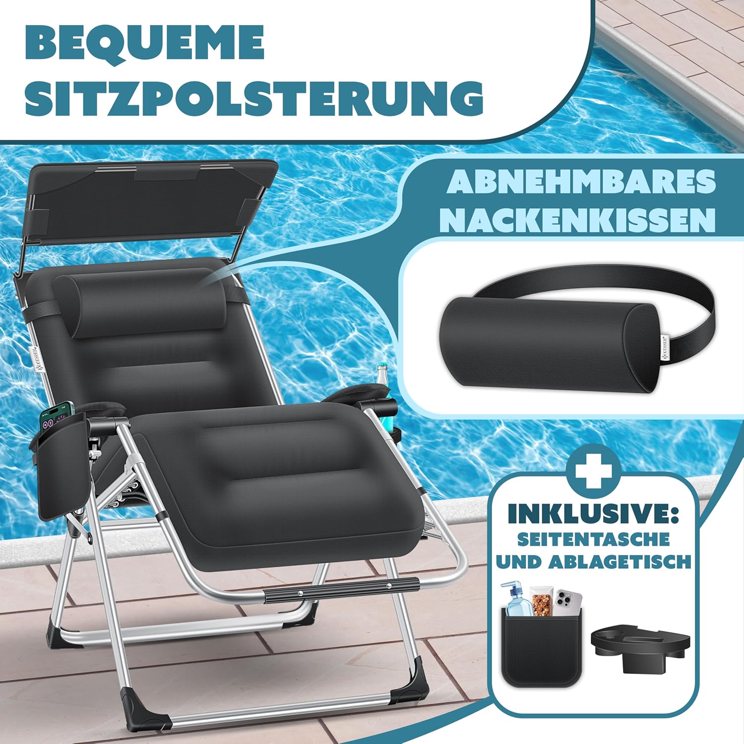 Comfortabel licht met de veiligheid: geniet van de "Zero Gravity" en voel je gewichtloos en bevrijd van alle zorgen nog een lange werkdag. Met de comfortabele en liggende bekleding kun je ontspannen en de positie van de opvouwbare ligstoel altijd aanpassen. Leun aan het comfortabele hoofdkussen en leg je voeten omhoog. Een geïntegreerde opbergtafel en een zijvak zorgen voor voldoende ruimte om dranken, smartphones enz. op te bergen.