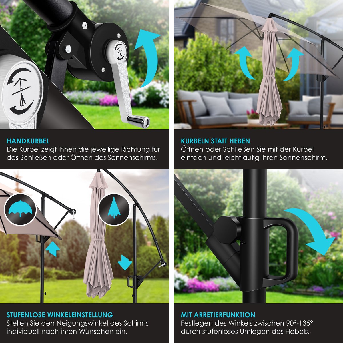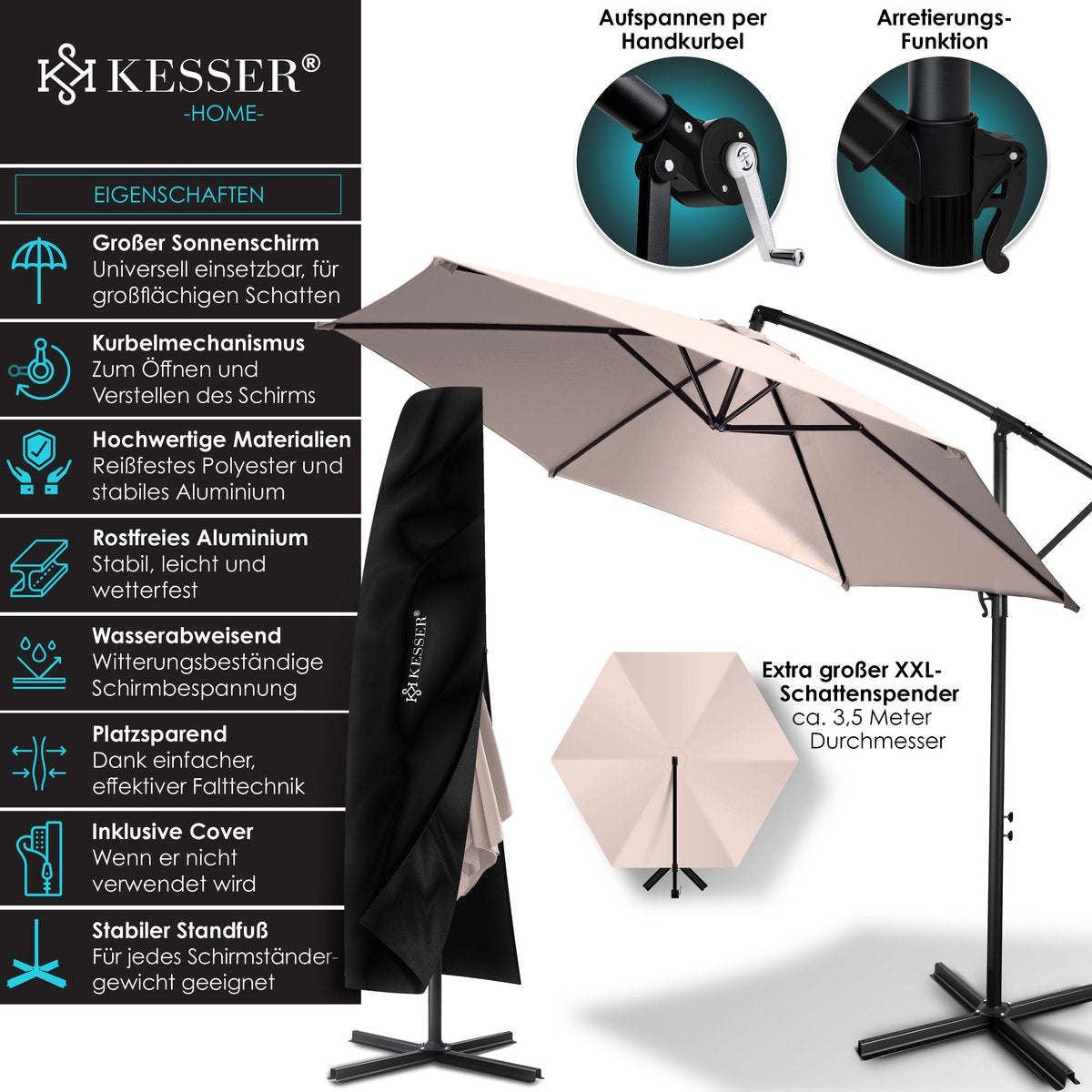 KESSER® Zweefparasol met voet - Ø3,5m - 360° Draaibaar - Taupe