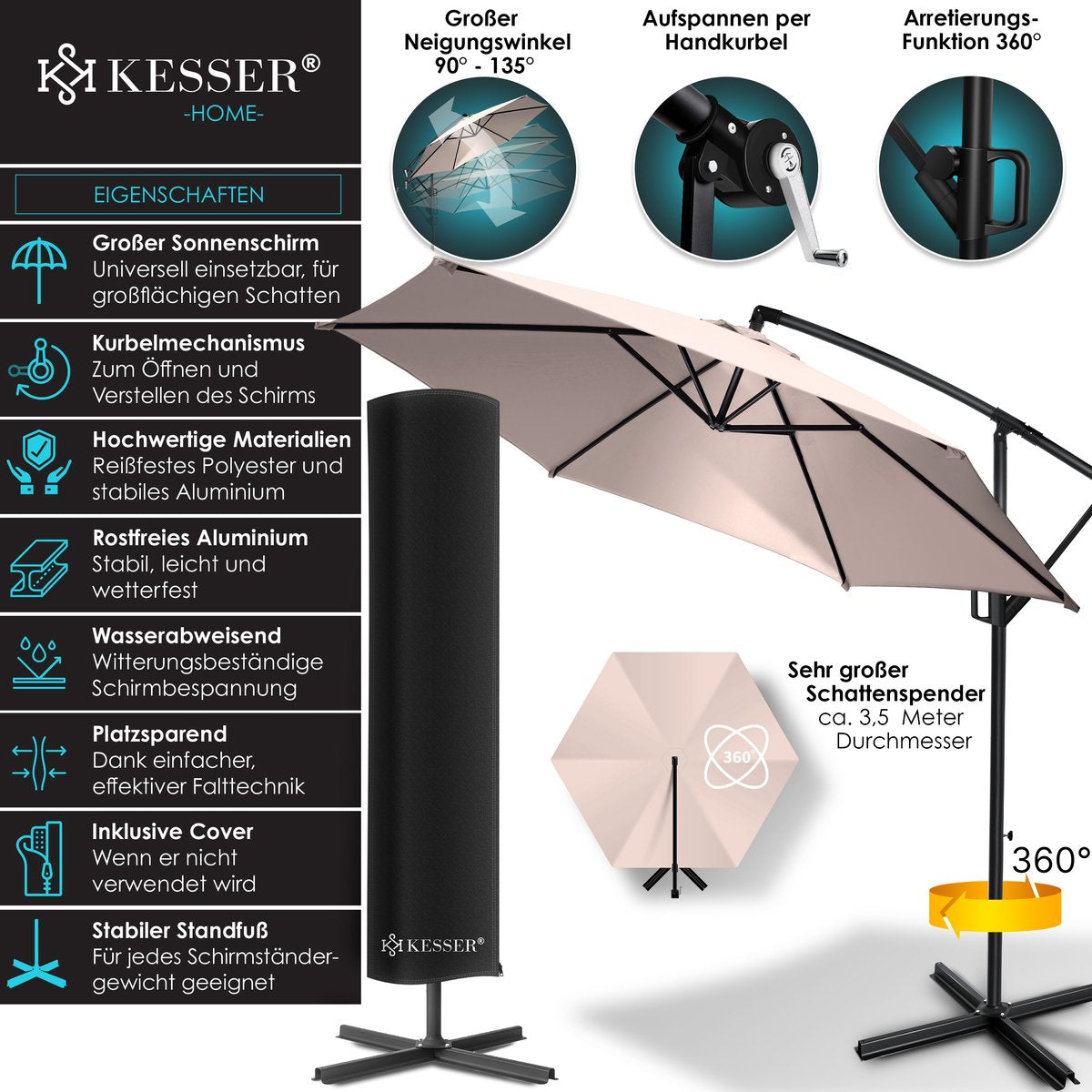 KESSER® Zweefparasol met voet  - Ø3,5m - 360° Draaibaar  - Taupe