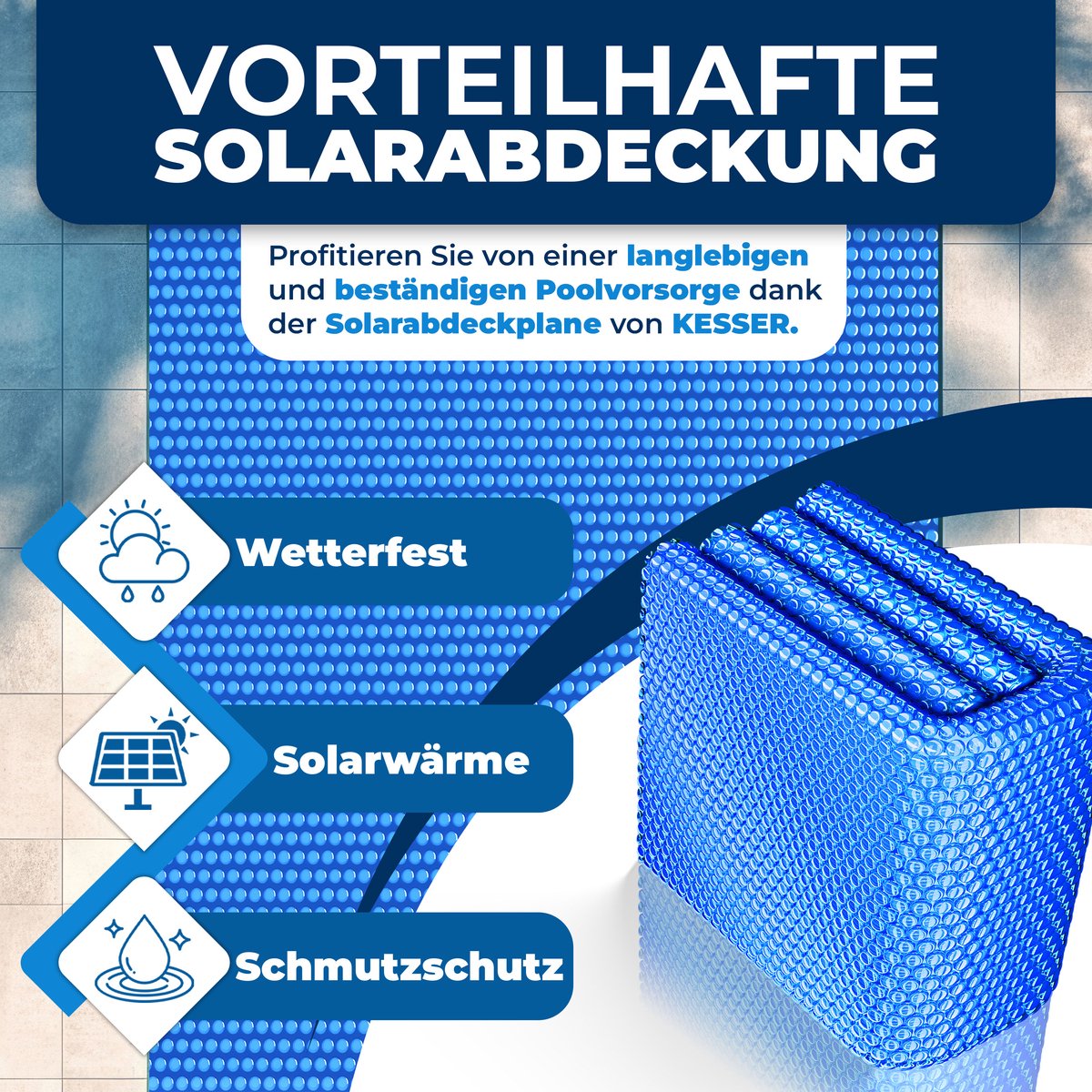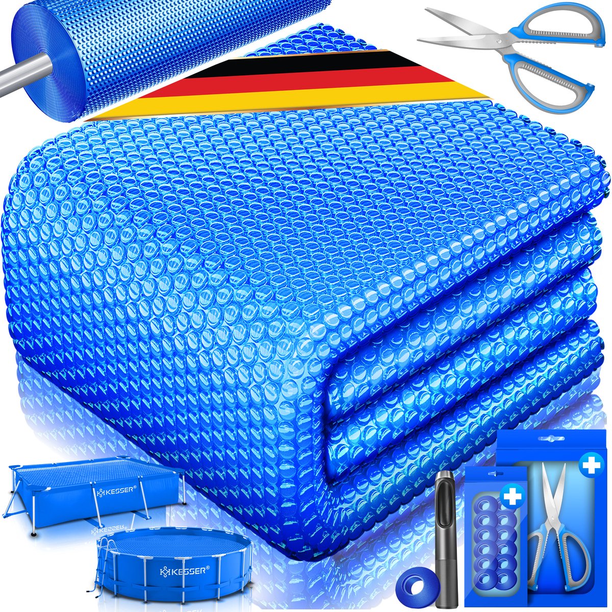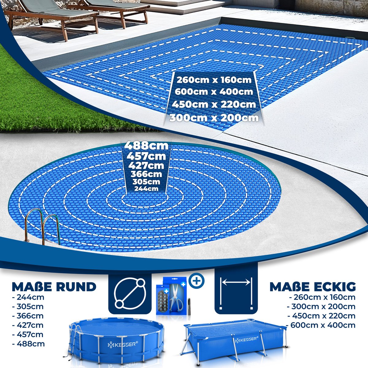 KESSER® Zwembad Afdekzeil Solar - verwarmend afdekzeil op maat te knippen geschikt voor Rechthoekige en ronde Zwembaden - Solarzeil inclusief met schaar, perforatietang & 12 oogjes voor bevestiging