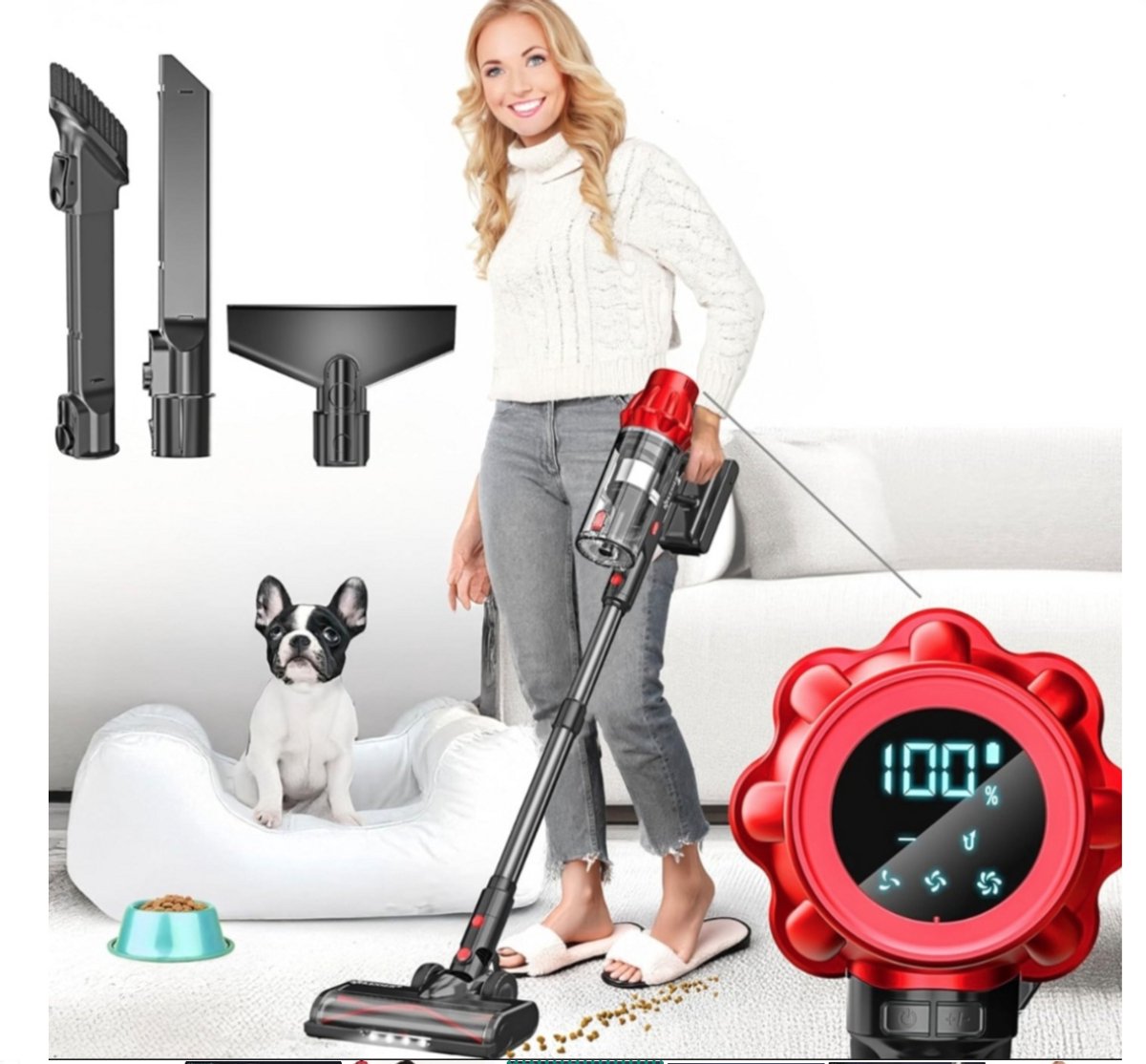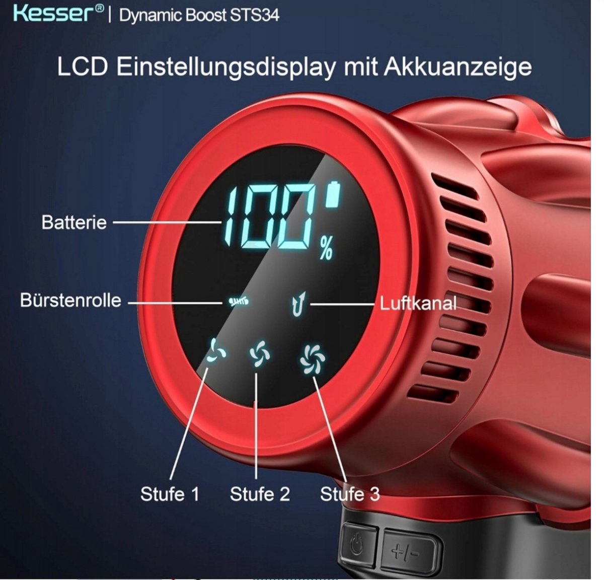 Gebruiksvriendelijk : Dankzij het intelligente led-display heeft u altijd overzicht. Het geeft het batterijniveau, de borstelrolstatus, het luchtkanaal en het vermogensniveau (1, 2 of 3) weer. D