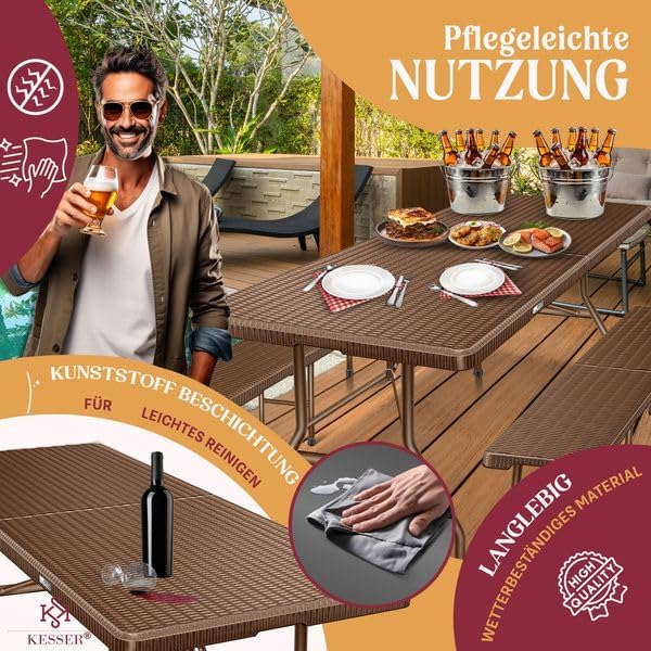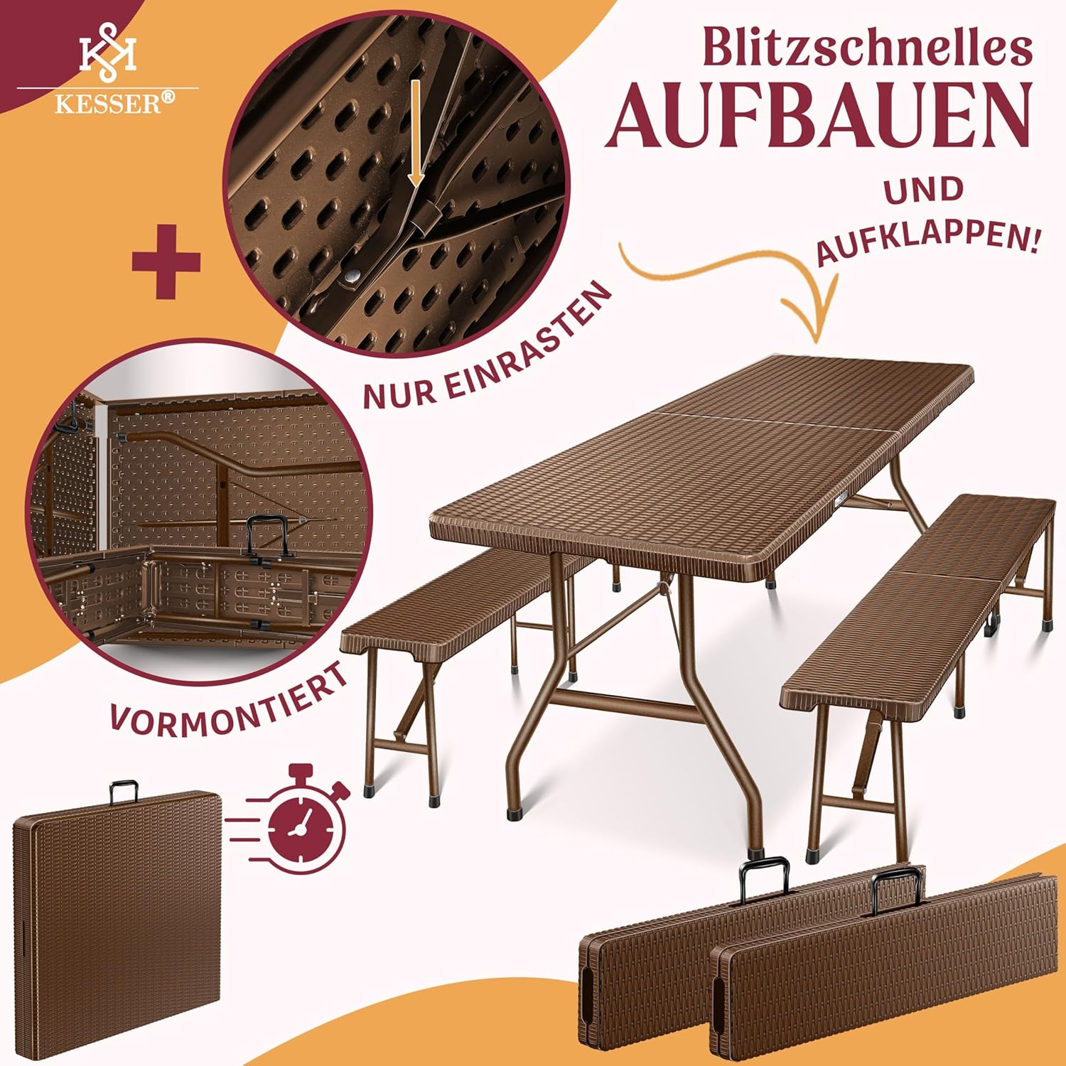 Verjaardag, feestjes, evenementen of barbecueavond voor elk seizoen, weerbestendige indoor en outdoor – deze robuuste biertentset van Kesser nodigt in ieder geval uit om gezellig samen te zitten.