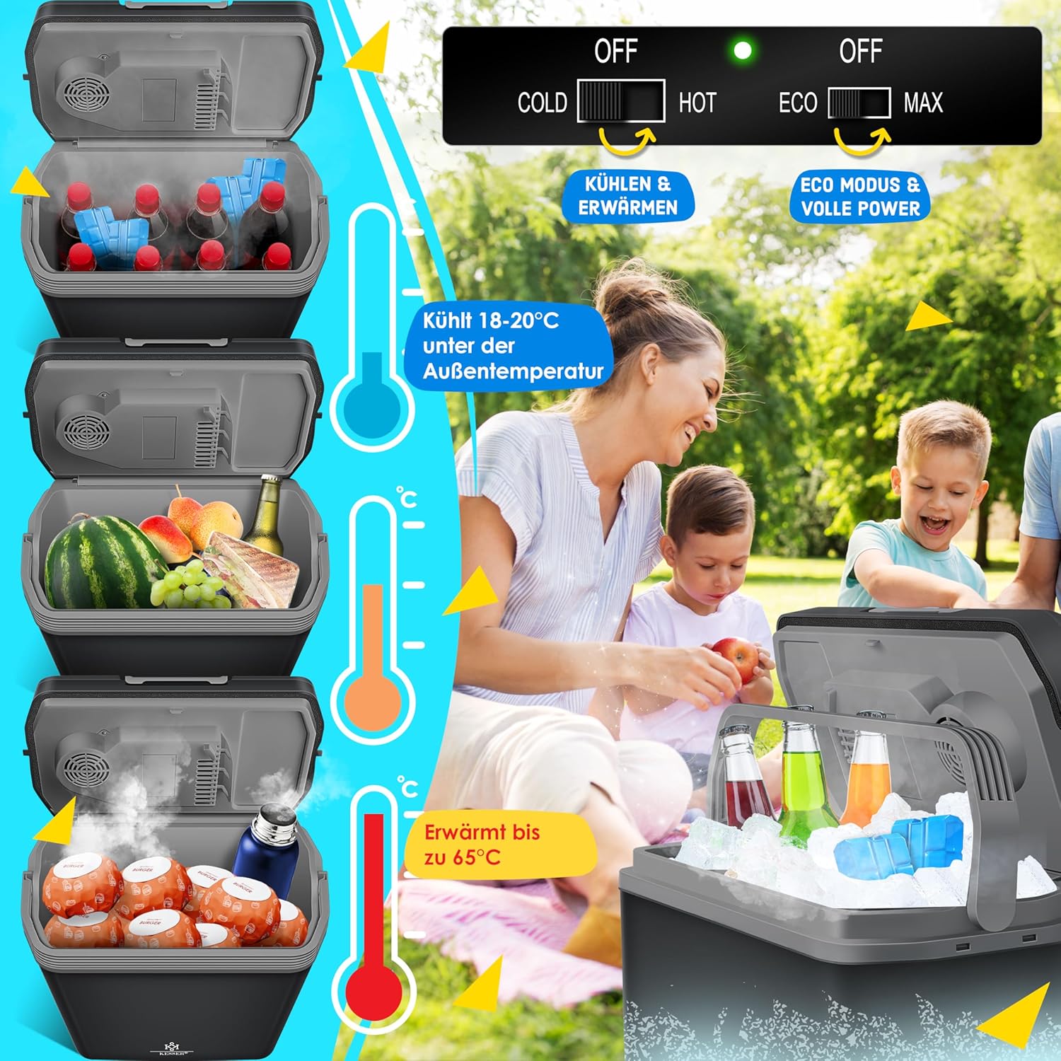 - Eenvoudig te bedienen: de 24 liter Kesser koelbox met 2 koelaccu's biedt je koude dranken in de zomer en warme gerechten in de winter. Dit veelzijdige product is uitgerust met een koel- en warmtefunctie. Dankzij de thermostaatgeregelde warmhoudfuncties kunnen levensmiddelen tot een temperatuur van 65 °C warm worden gehouden.