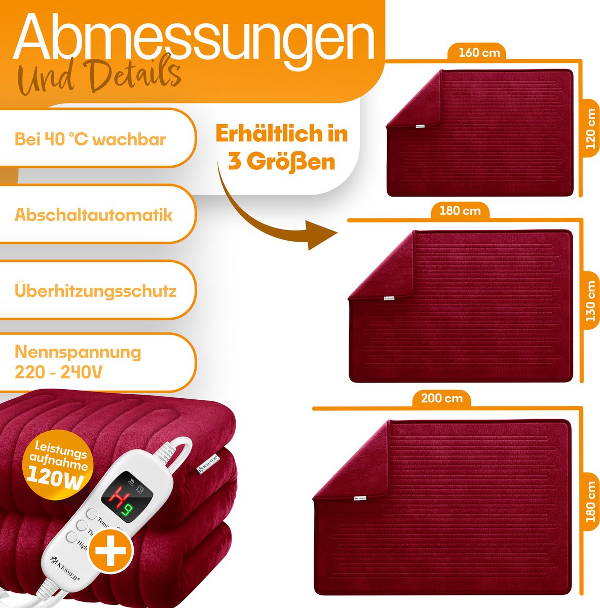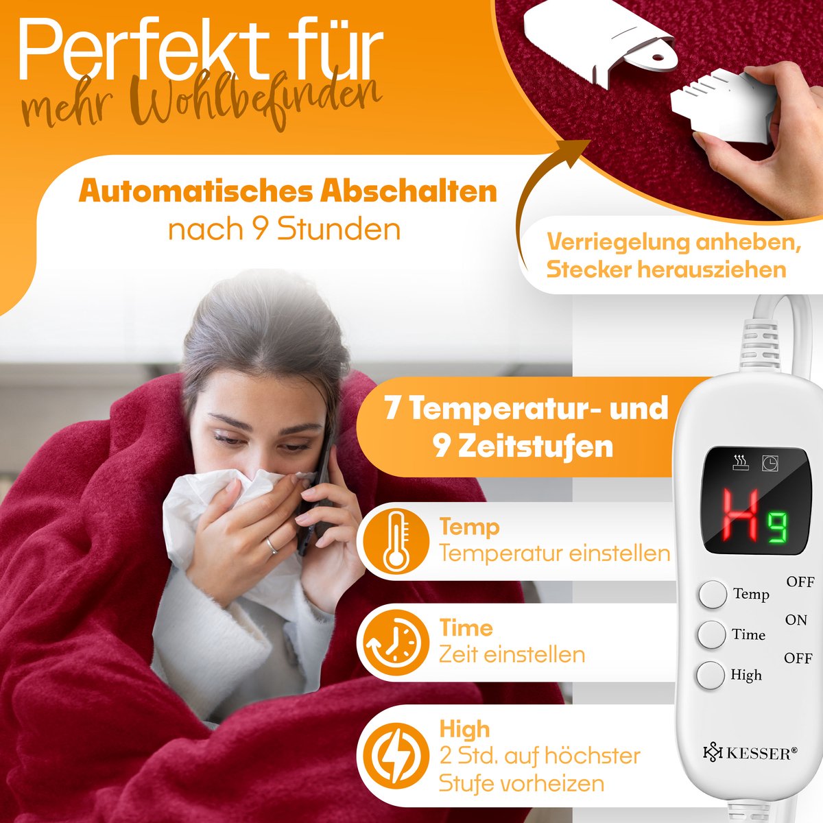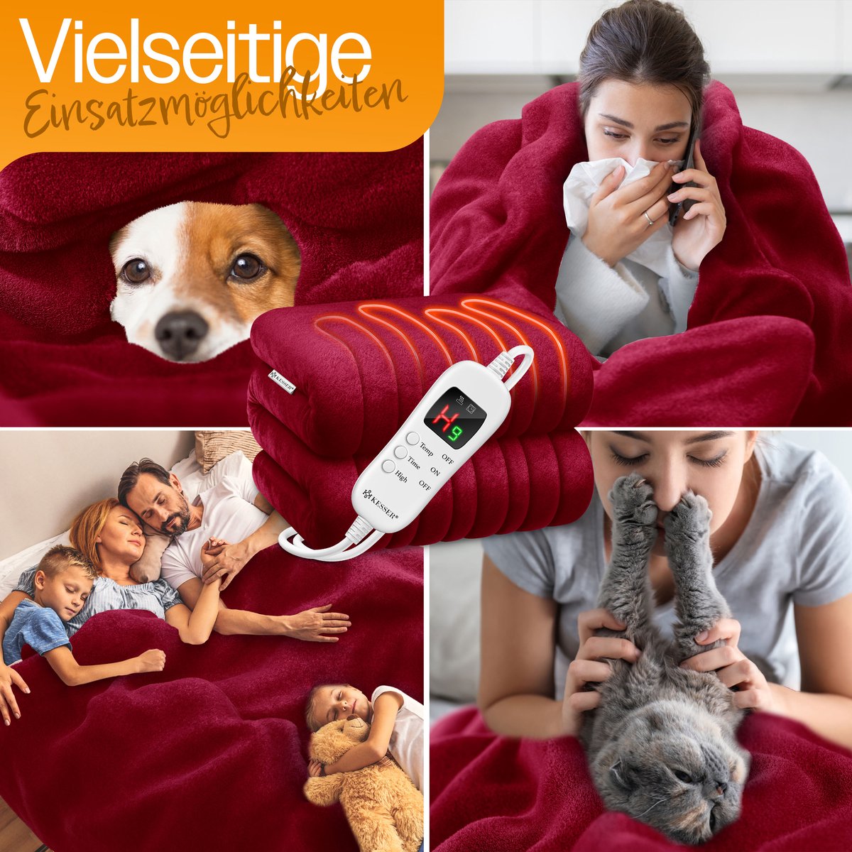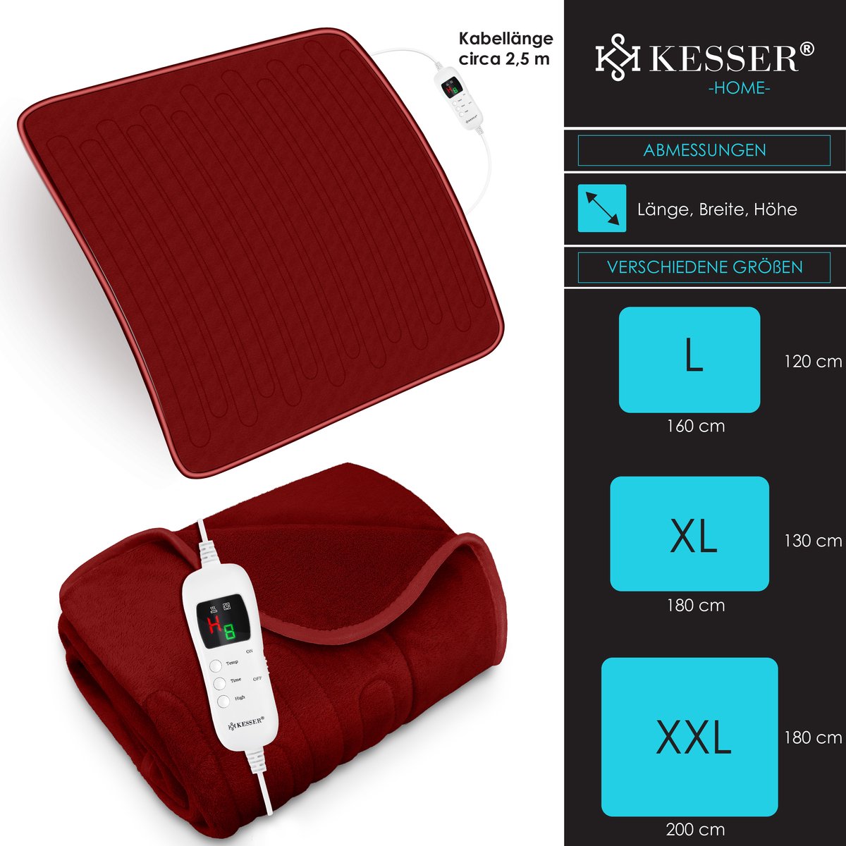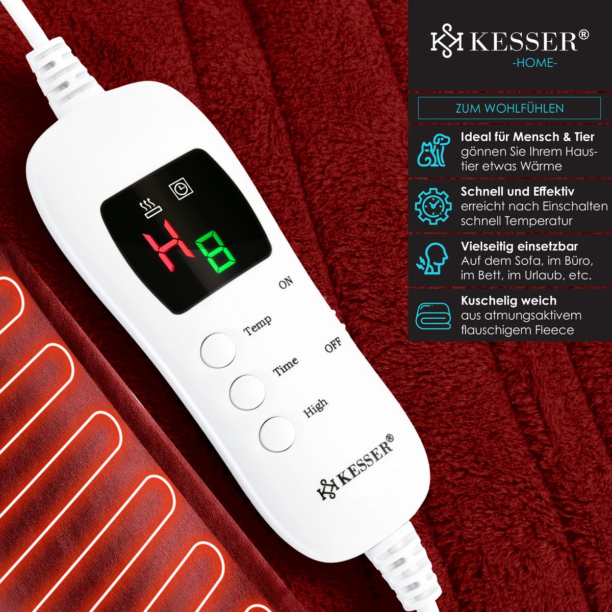 Met de elektrische deken van KESSER kun je meer doen dan alleen lekker knus liggen.Door het te gebruiken, worden alle delen van het lichaam warm gehouden.De ideale oplossing voor koude winterdagen!