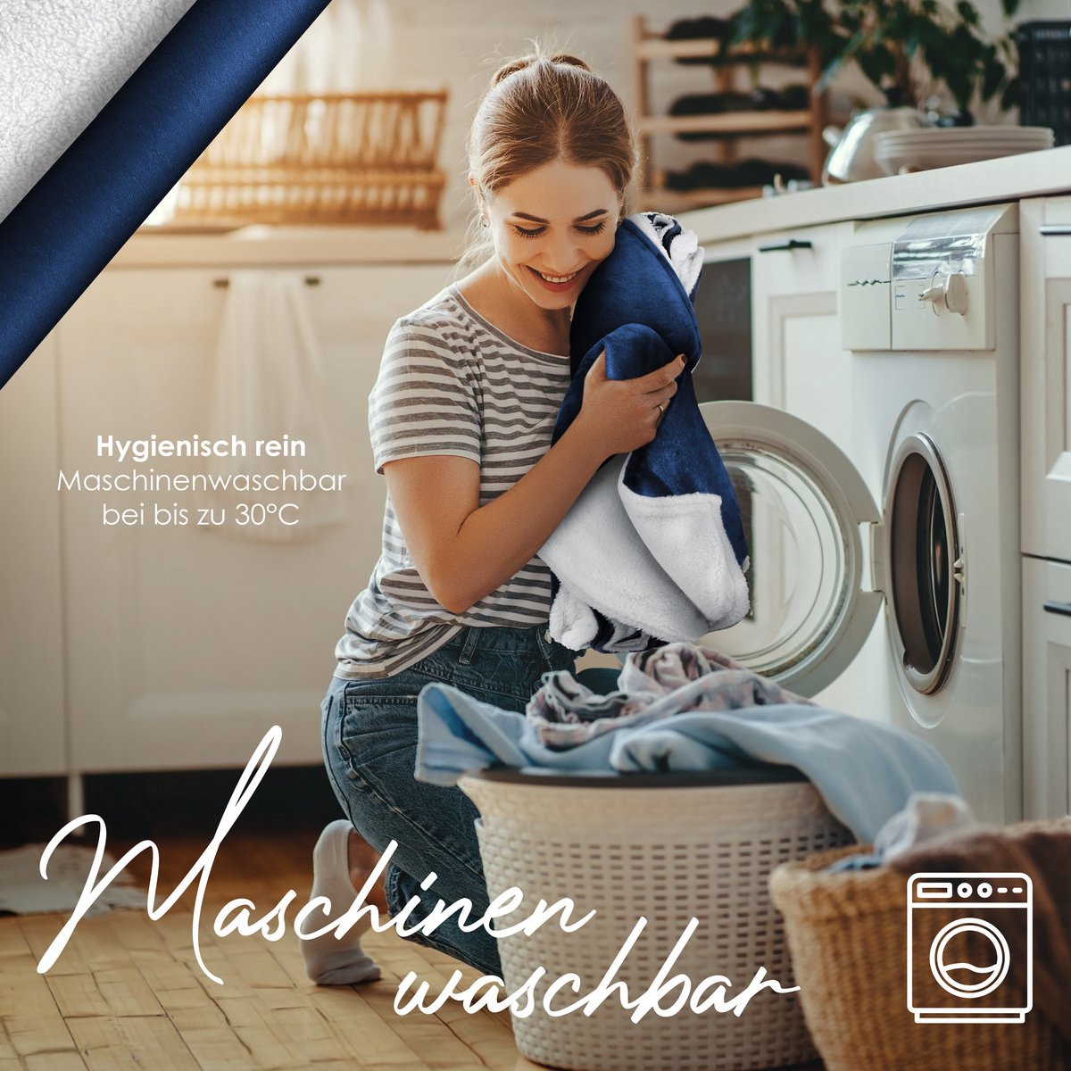 EENVOUDIG ONDERHOUD: Ons knuffeldoekje geeft niet alleen een goed gevoel, maar is ook heel gemakkelijk te onderhouden.Je kunt hem zonder zorgen in de wasmachine wassen op 40°C en de verwijderbare stekker maakt schoonmaken een fluitje van een cent.Zo blijft je deken fris en hygiënisch, klaar voor vele gezellige uurtjes.