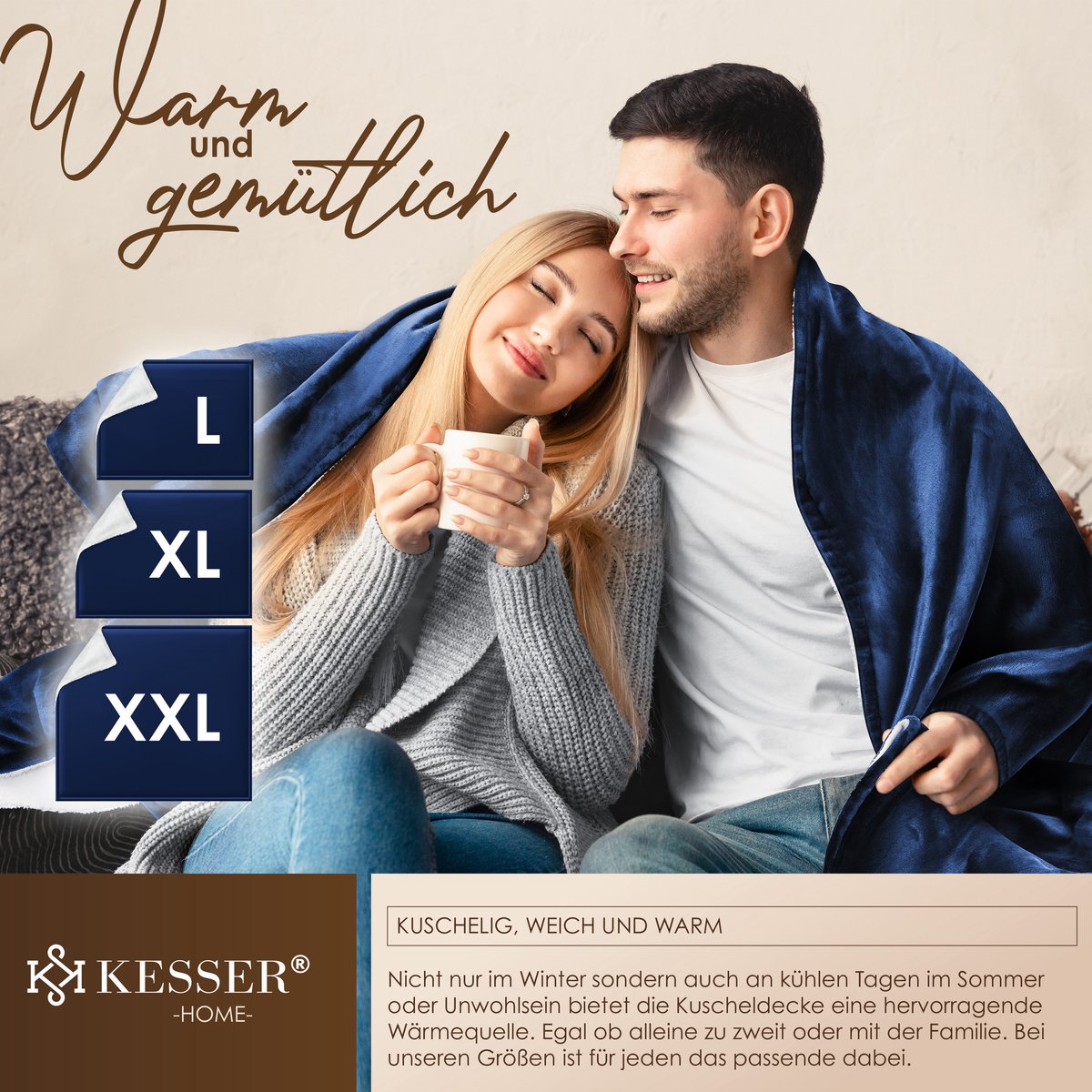DRIE VERSCHILLENDE MATEN: We bieden de KESSER deken aan in drie verschillende maten zodat je altijd de juiste deken bij de hand hebt.Of je nu alleen wilt ontspannen of samen met het gezin wilt genieten, onze deken biedt genoeg ruimte en warmte om aan elke behoefte te voldoen.