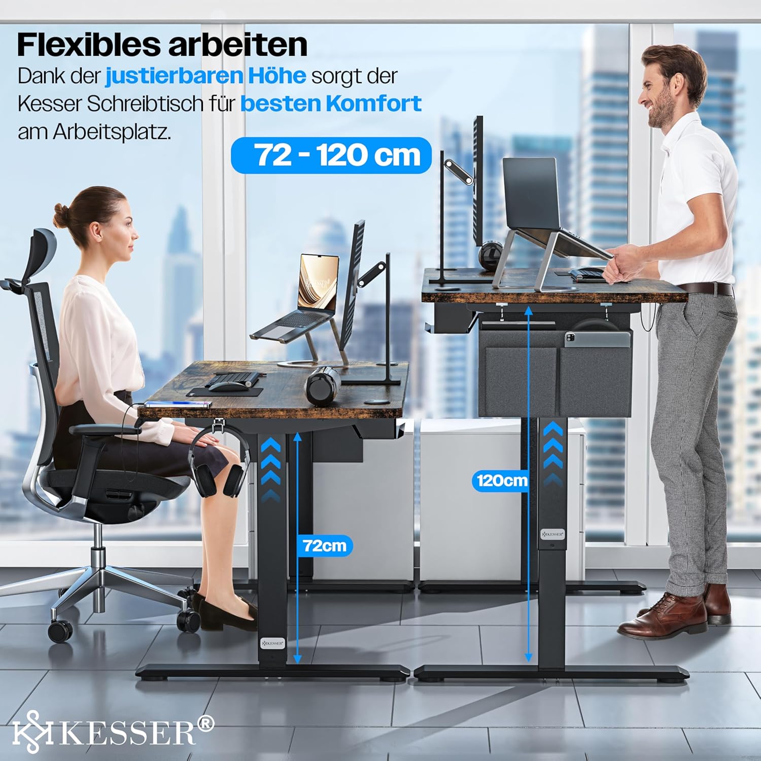 - Premium kwaliteit en stille bediening: Gemaakt van hoogwaardige materialen, biedt het bureau van Kesser een lange levensduur en een stil gebruik bij het verstellen van de hoogte. De zachte lifting-technologie en de 360° wielen maken het bureau ideaal voor gebruik in grote kantoren, vergaderzalen en individuele kantoren. Verkrijgbaar in verschillende kleuren en maten, past perfect bij je kamer en je eisen.