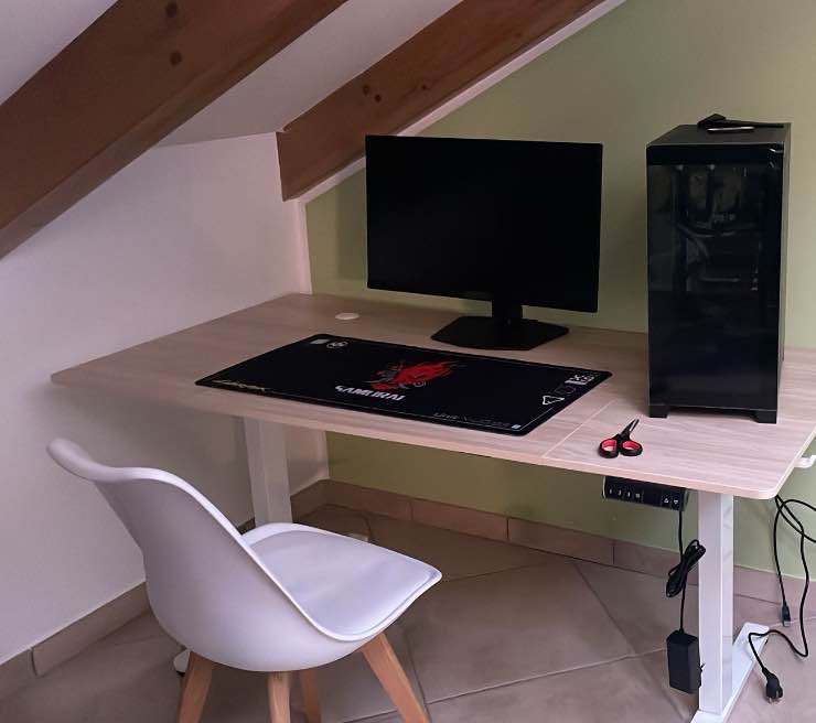 Ergonomisch design en handige accessoires: het bureau is uitgerust met ergonomische functies die het comfort op de werkplek aanzienlijk verbeteren. Daartoe behoren nuttige accessoires zoals een hoofdtelefoonhouder, een zijvak voor extra opslag, een nauwkeurige muismat, een kabeldoorvoer en een kabelgoot. Deze functies zorgen voor een opgeruimd en goed georganiseerd werkblad dat je productiviteit verhoogt.