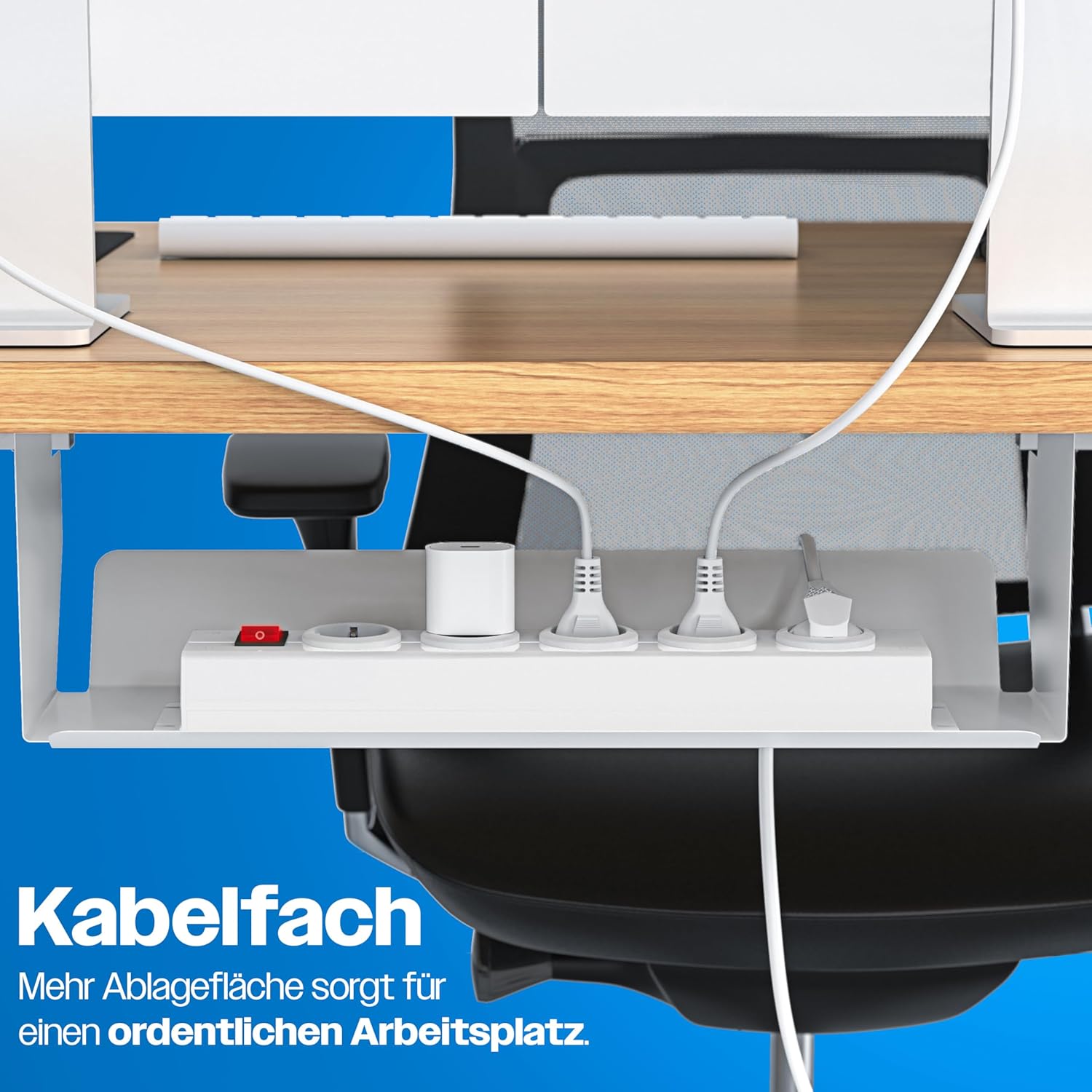 Eenvoudige bediening en geïntegreerde aansluiting: met de intuïtieve bediening door aanraking kun je het bureau snel en eenvoudig in de gewenste positie brengen. De geheugensleuven maken het opslaan van je favoriete hoogtes mogelijk. De geïntegreerde USB-poort zorgt ervoor dat je apparaten altijd opgeladen en gebruiksklaar zijn, zonder dat er extra opladers of kabels op het bureau ontstaan.