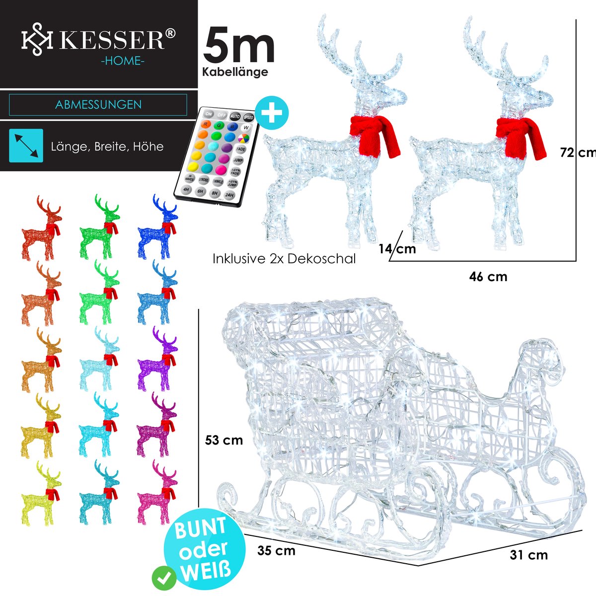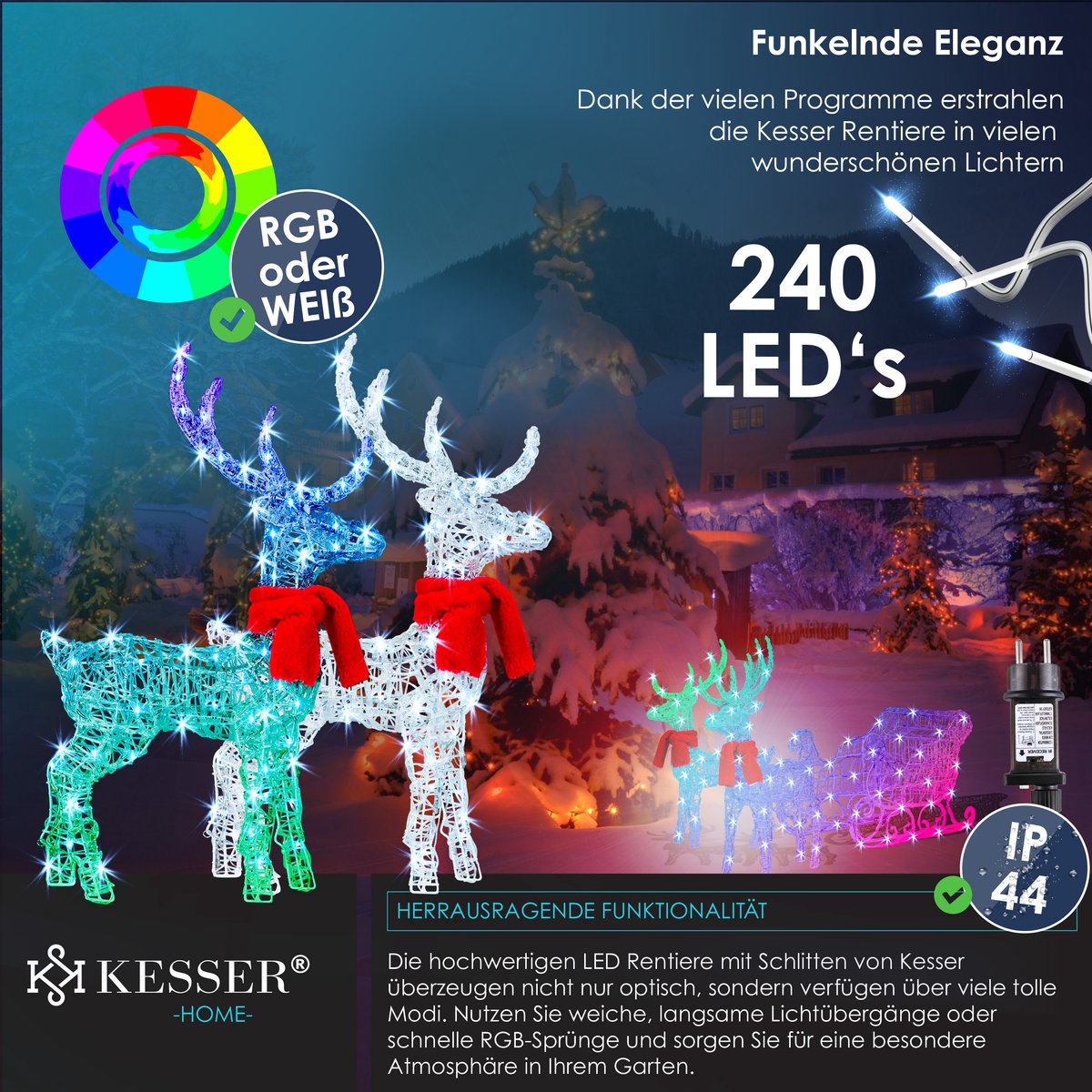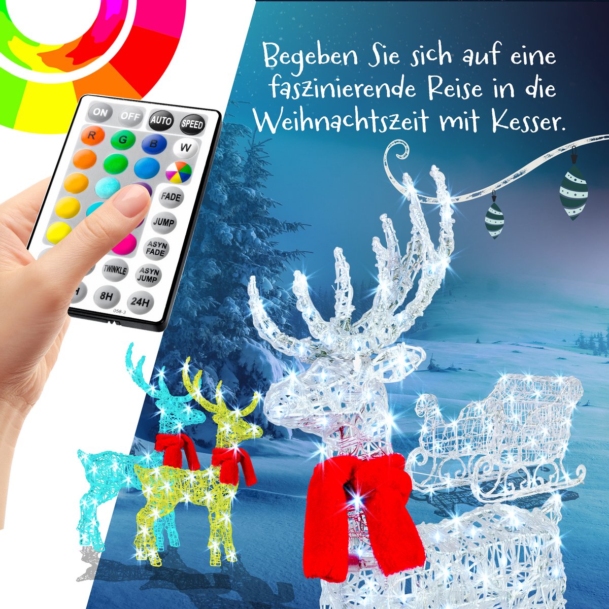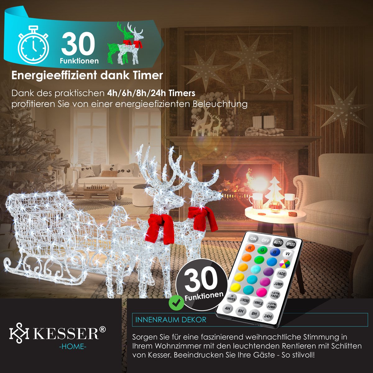 KESSER LED rendier, LED's van hoge kwaliteit met continue verlichting en knipperende LED's, IP44 voeding voor buitengebruik, stabiele voeten en stevige constructie, flexibel dankzij kabellengte, incl. timer, afstandsbediening.