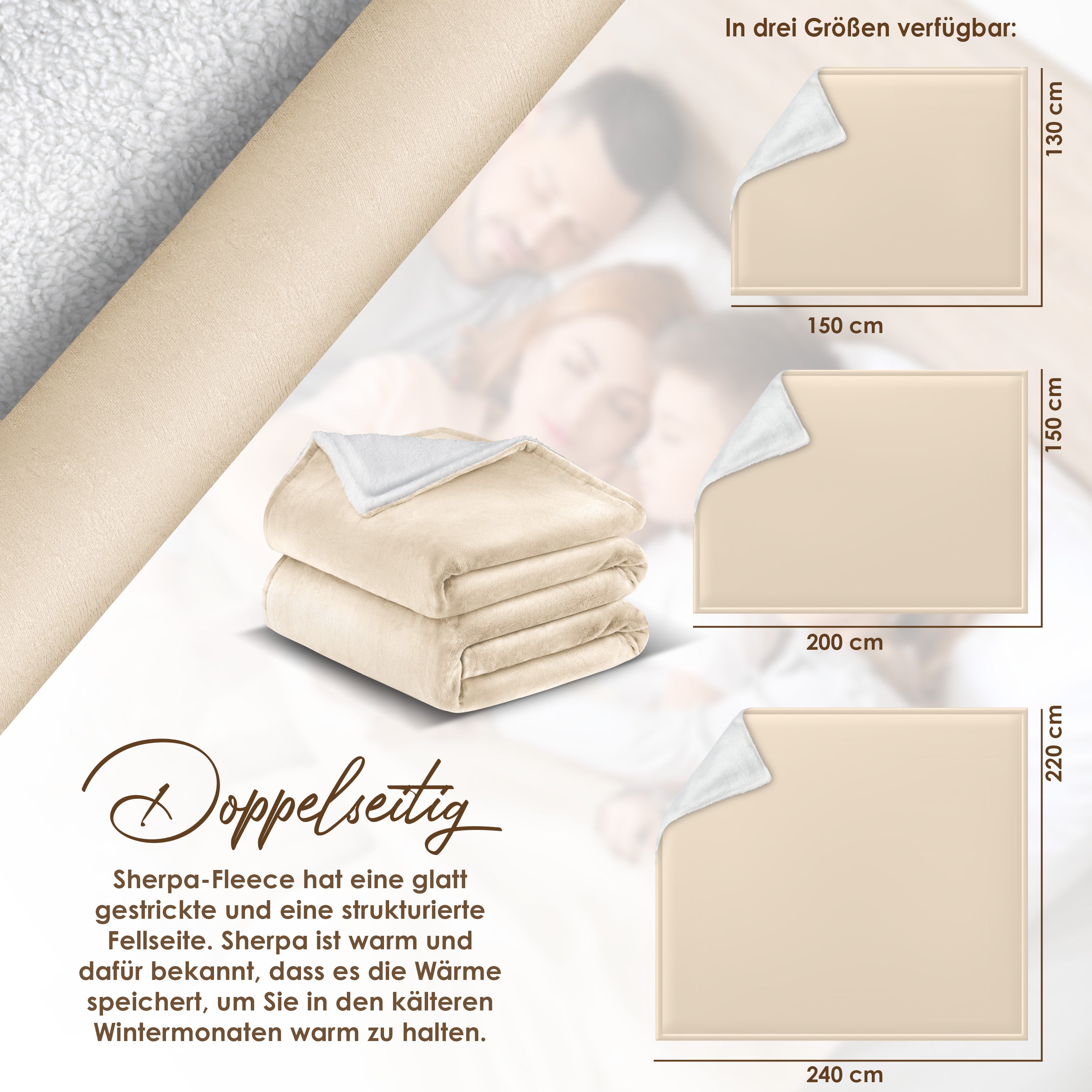 KESSER® Knuffeldeken, wollige sherpa, extra zacht en warm, flanel, fleecedeken, kreukbestendig/verkleurt niet, als bankdeken, bankdeken of sprei, 220 cm x 240 cm (XXL) Beige