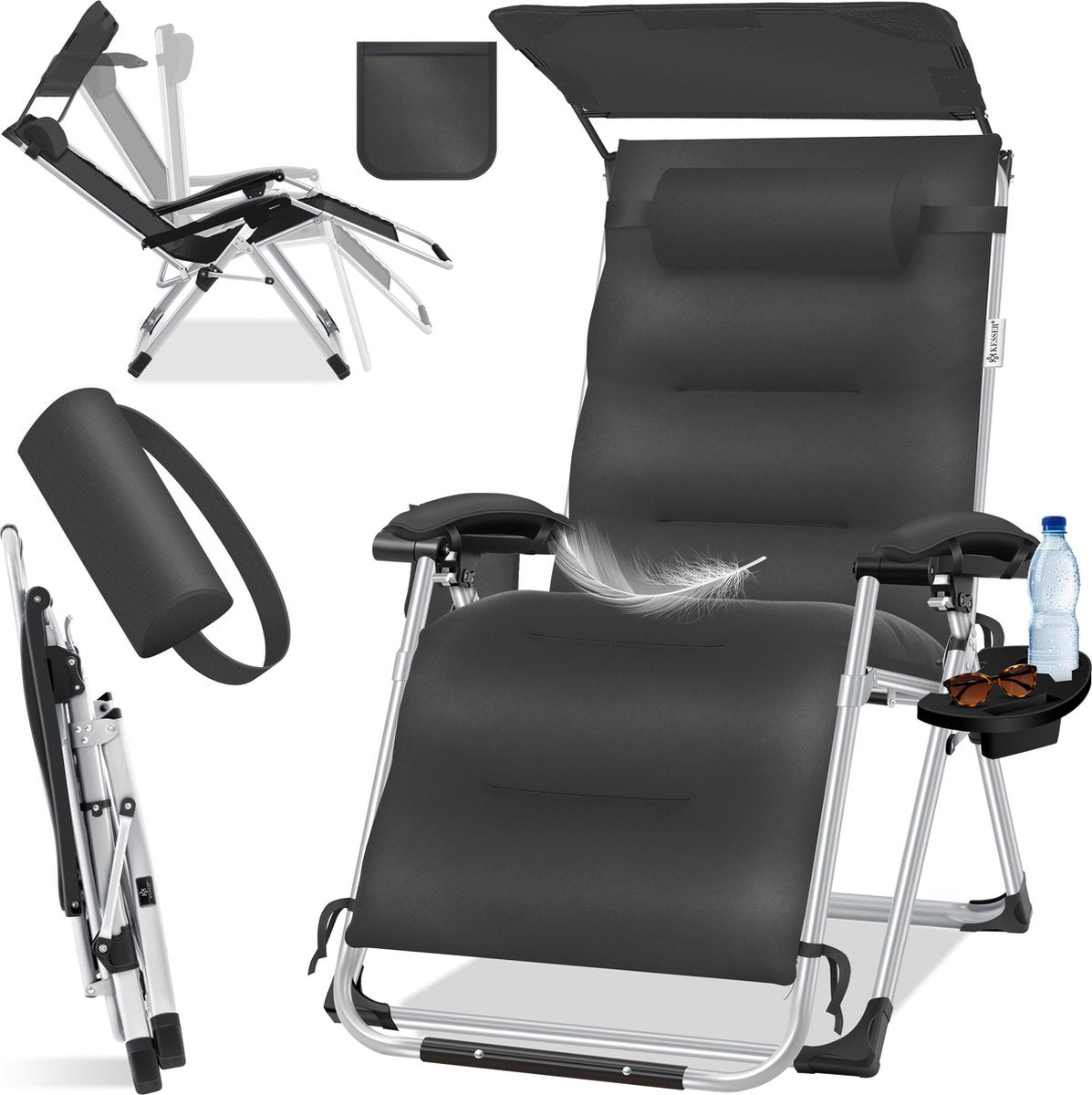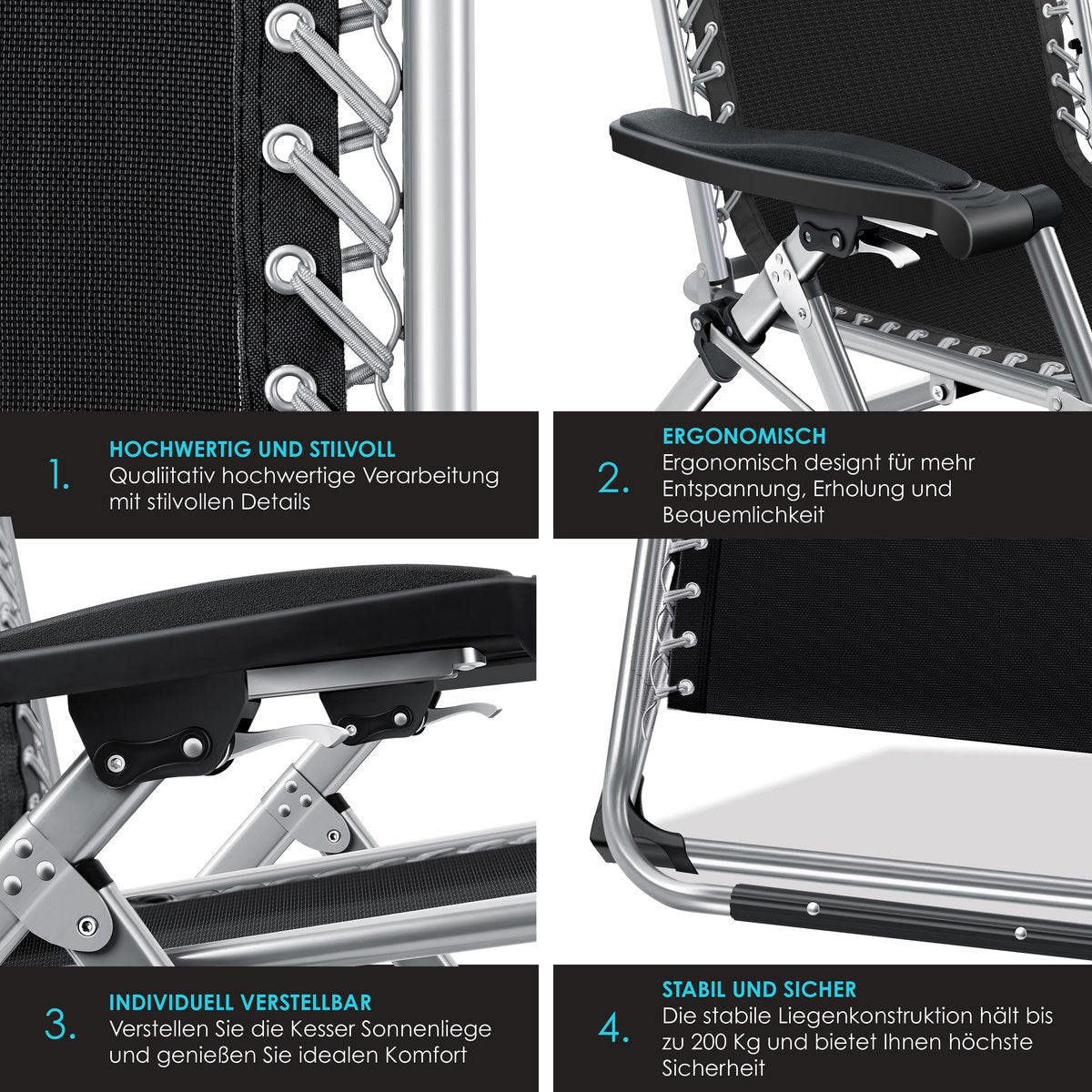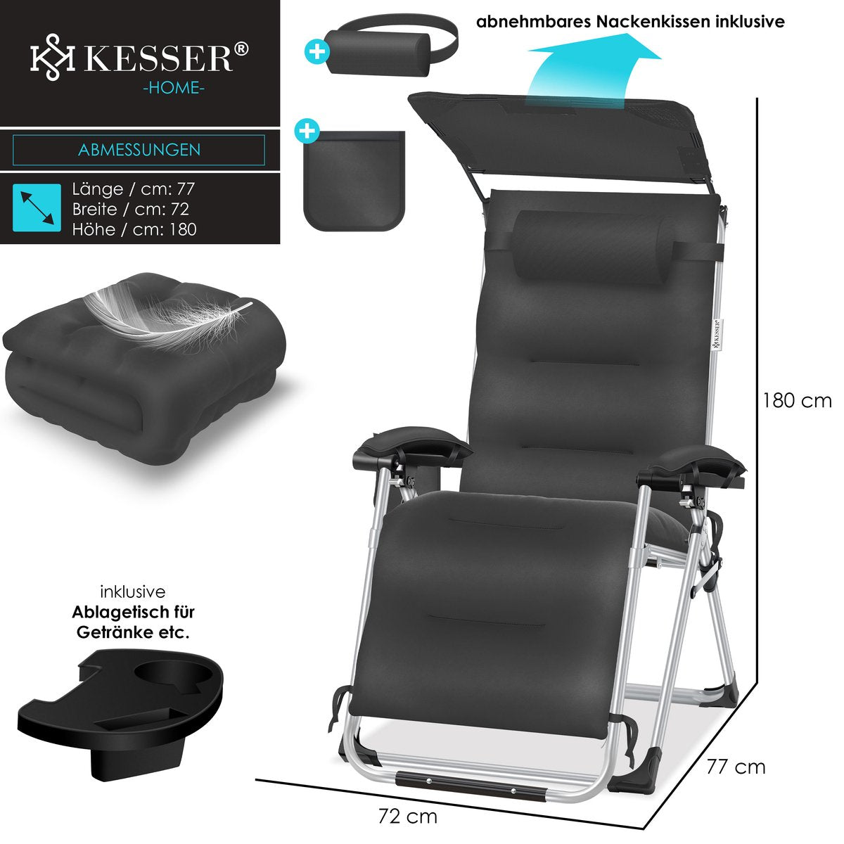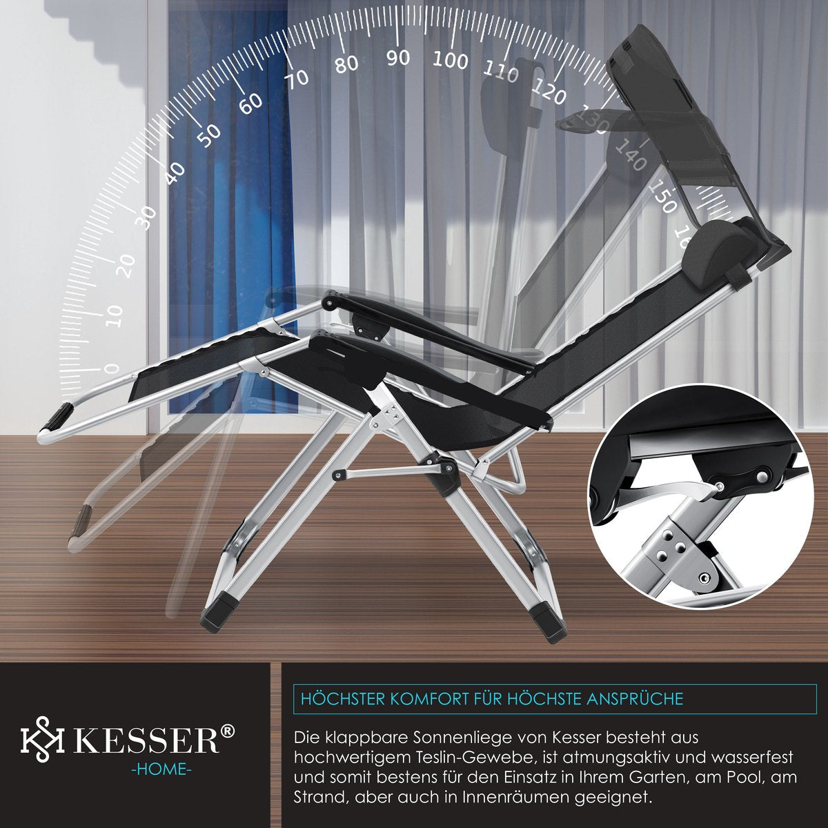 KESSER ligstoel met extra dikke, hoogwaardige bekleding, extra breed en comfortabel ligoppervlak met ergonomische en gewatteerde armleuningen, ademend en antislip materiaal, inclusief comfortabele hoofdsteunen, geïntegreerde opbergtafel, praktische zijvakken. Ultrastabiele ligstoelconstructie en antislip dankzij hoogwaardige hoeksteunen op de voetframes.