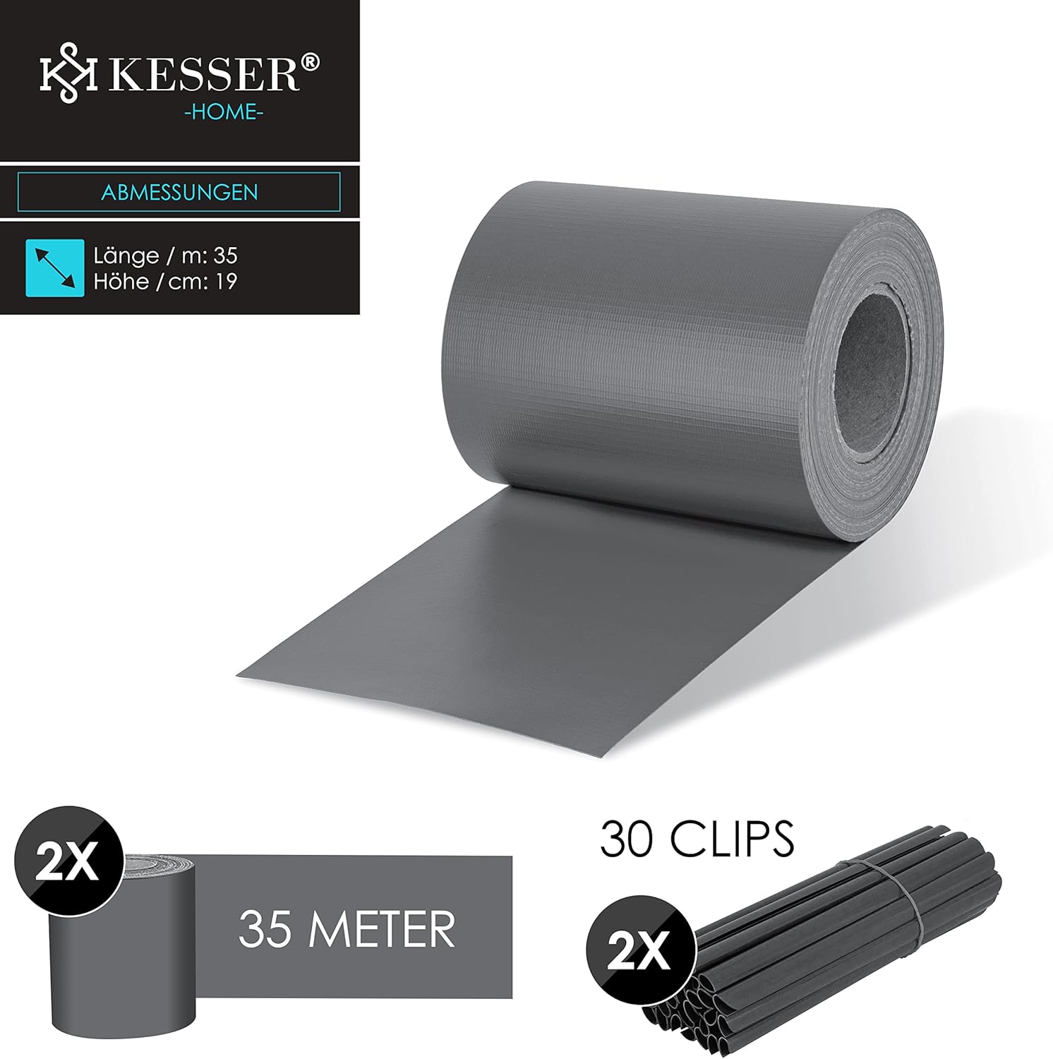 Kesser inkijkbeschermingsrol van hoogwaardig, vuilafstotend en weerbestendig pvc, geschikt voor temperaturen van -30 °C tot + 70 °C voor tuin, huis, erf en zwembad, inclusief 60 bevestigingsclips.