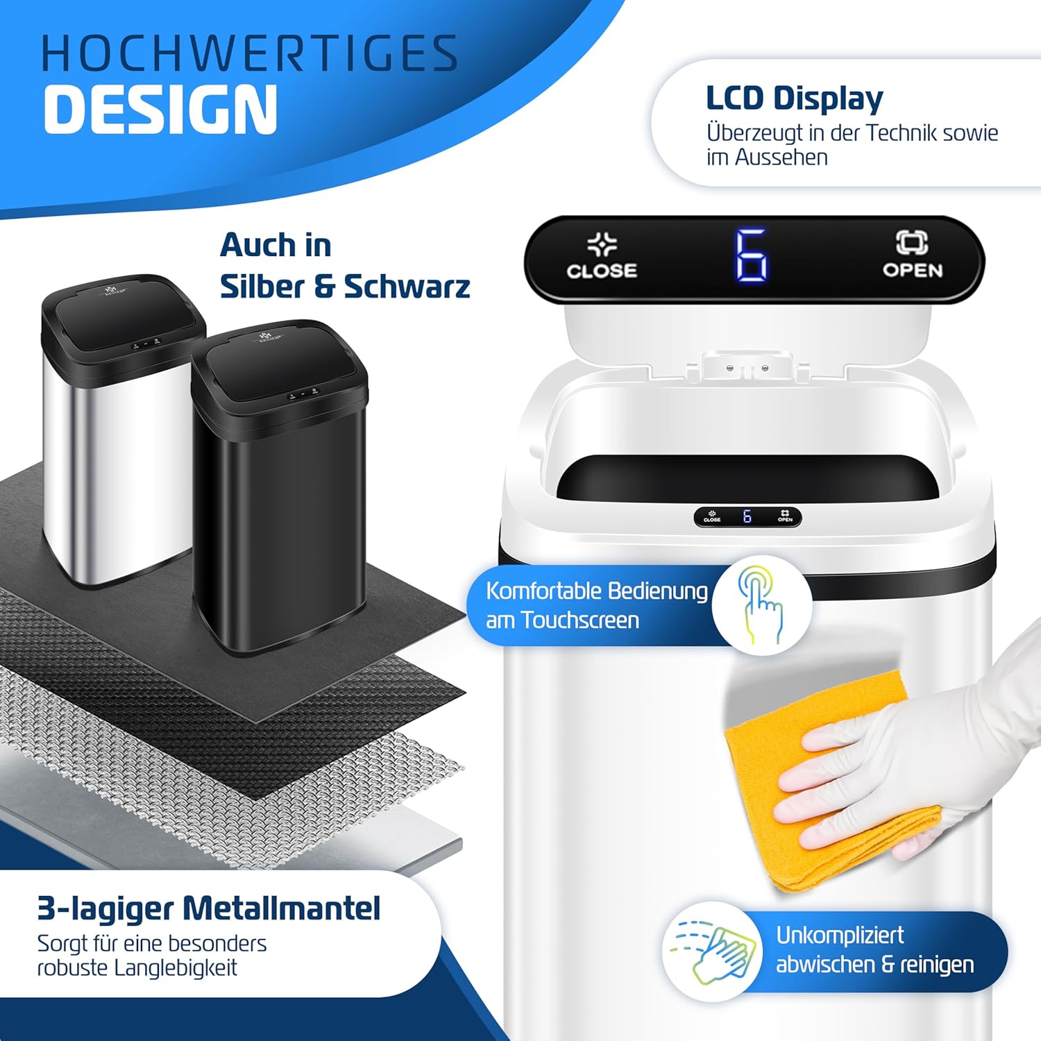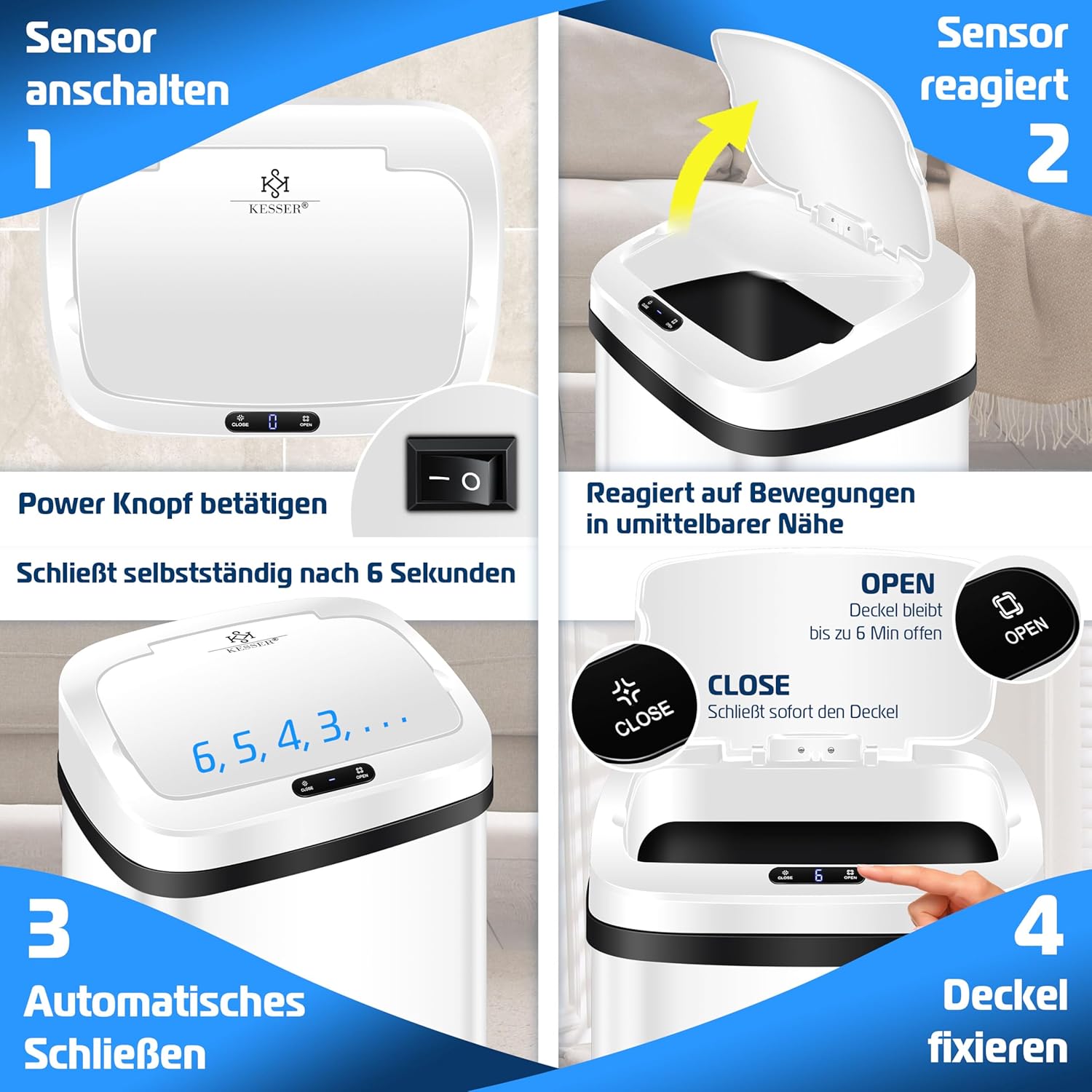 De Kesser Premium Sensor Afvalbak herdefinieert afvalverwerking door de hoogste kwaliteit, een innovatieve automatische sensor en een modern design te combineren. Probleemloze reiniging zorgt voor langdurige hygiëne – even afnemen en schoonmaken en hij glanst weer.