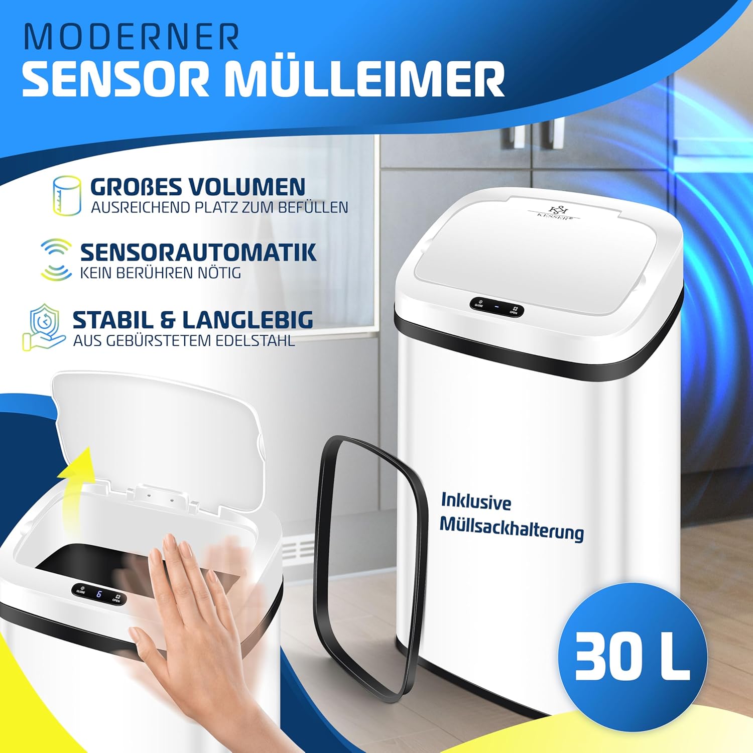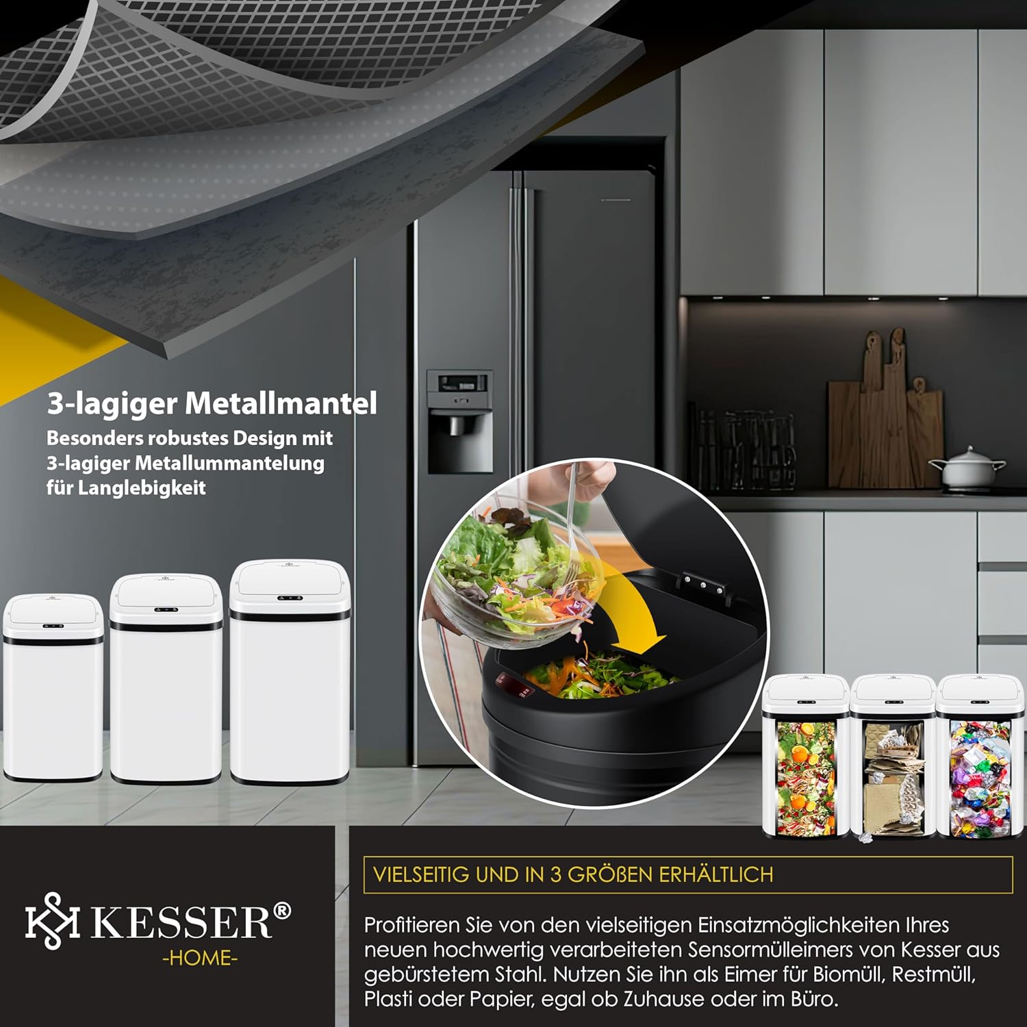 KESSER Premium afvalbak met sensor, innovatieve automatische sensor, hoogwaardige afwerking, veelzijdige maatvoeringen, hygiënisch concept, automatisch soft-close systeem en modern, esthetisch design.