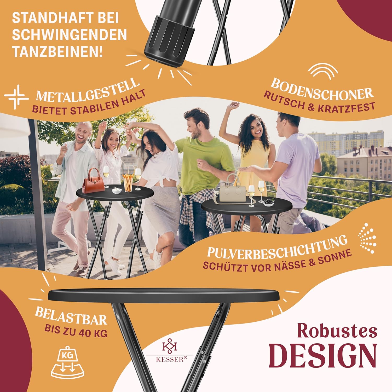 Opvouwbaar en ruimtebesparend: deze statafel kan dankzij het slimme design snel en eenvoudig worden op- en ingeklapt. Dit maakt hem ideaal voor flexibele inzetstukken, omdat hij na gebruik ruimtebesparend kan worden opgeborgen. Of je de tafel in een handomdraai voor een spontaan feest neerzet of na het evenement weer opbergt – de KESSER statafel is altijd klaar.