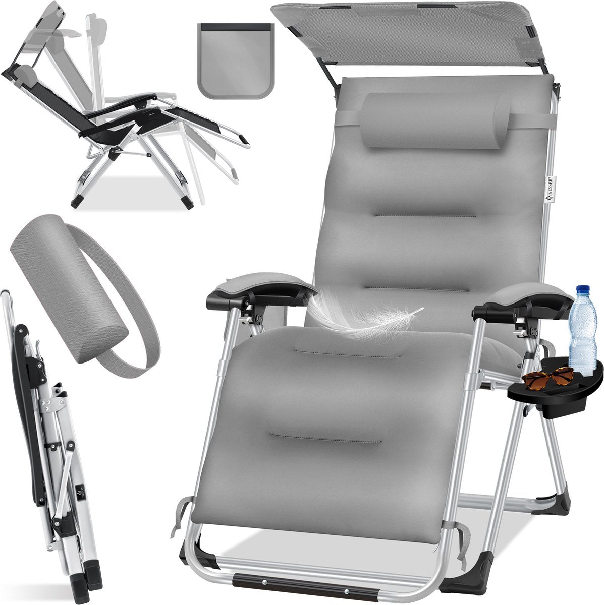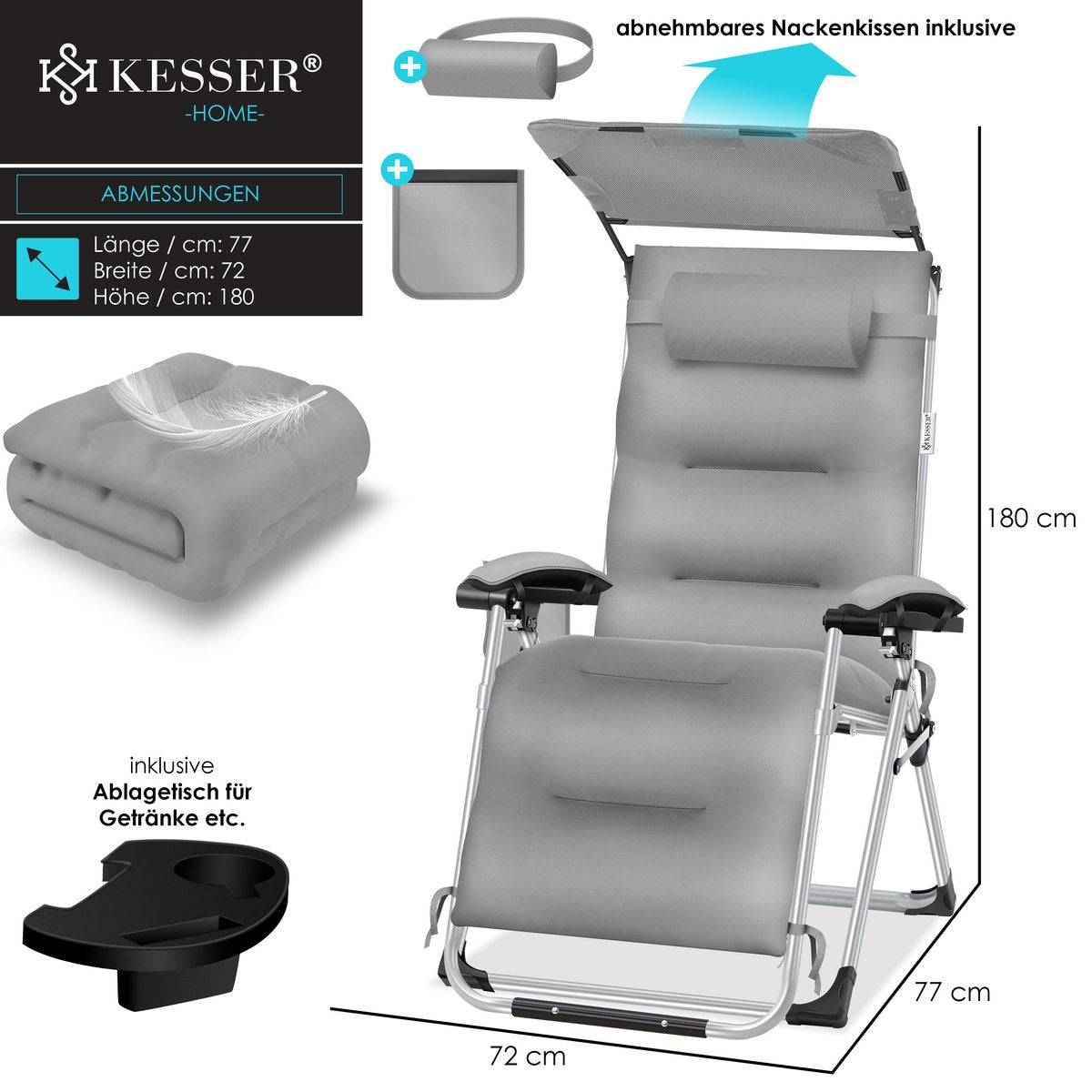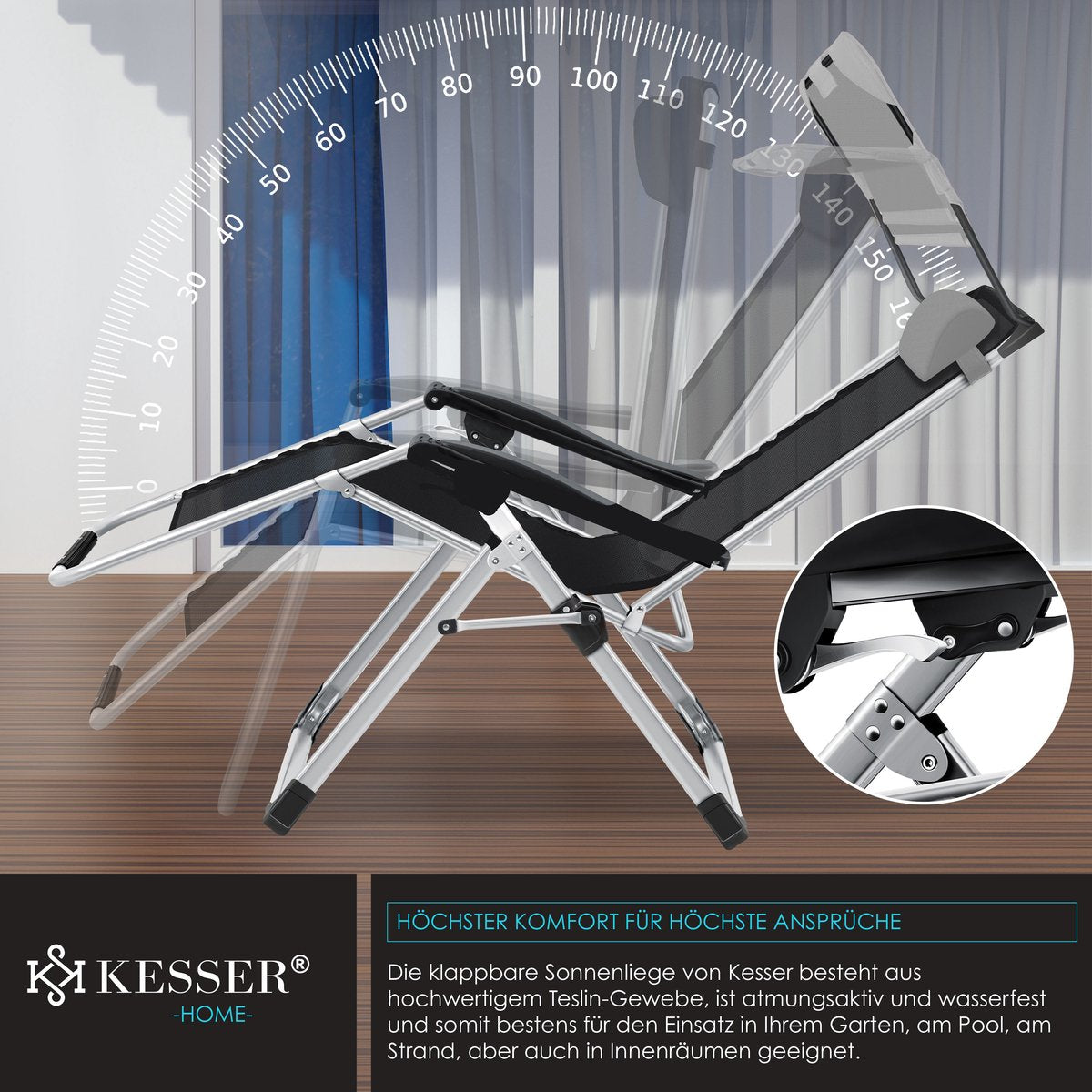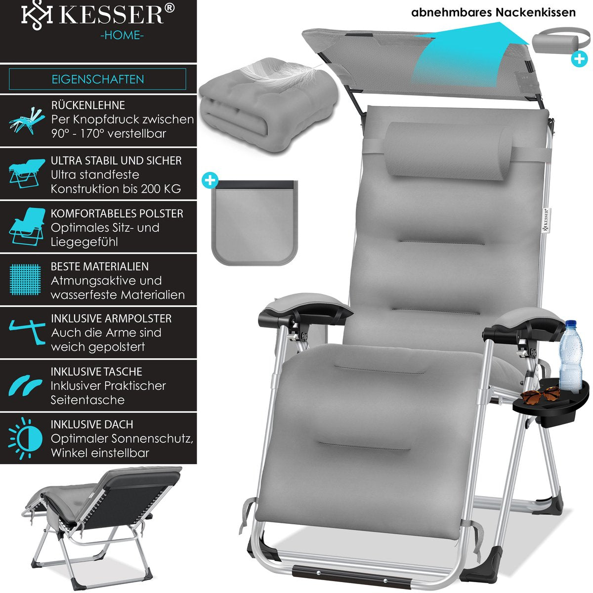 KESSER ligstoel met extra dikke, hoogwaardige bekleding, extra breed en comfortabel ligoppervlak met ergonomische en gewatteerde armleuningen, ademend en antislip materiaal, inclusief comfortabele hoofdsteunen, geïntegreerde opbergtafel, praktische zijvakken. Ultrastabiele ligstoelconstructie en antislip dankzij hoogwaardige hoeksteunen op de voetframes.