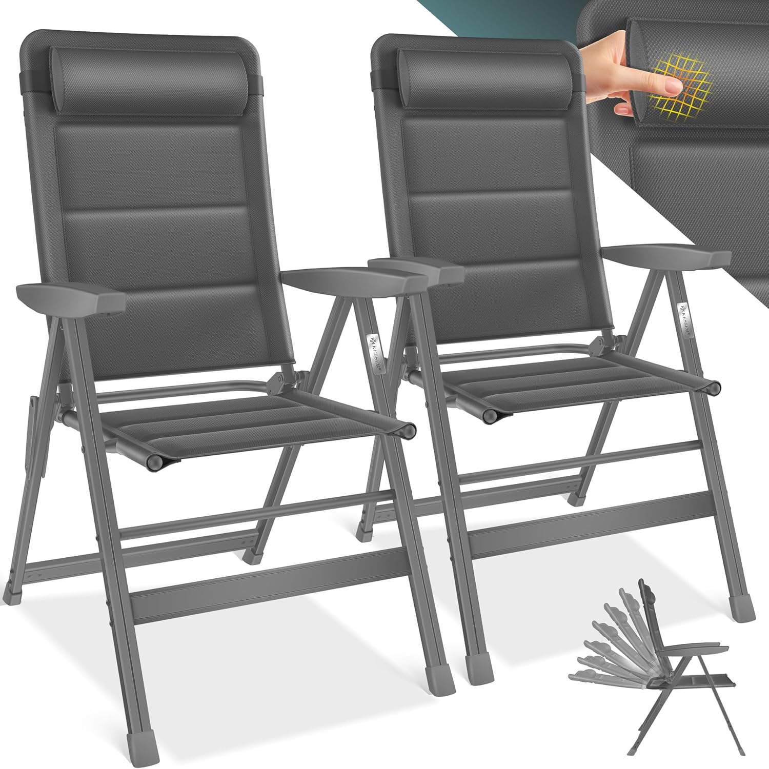 KESSER tuinstoel, comfort en ontspanning dankzij 7-voudig verstelbare rugleuning, duurzaam textielmateriaal, stabiel aluminium frame, vouwfunctie, weerbestendig, comfortabele hoofdsteun met schuimvulling, antislip voeten, belastbaarheid tot 150 kg en ergonomische bekleding