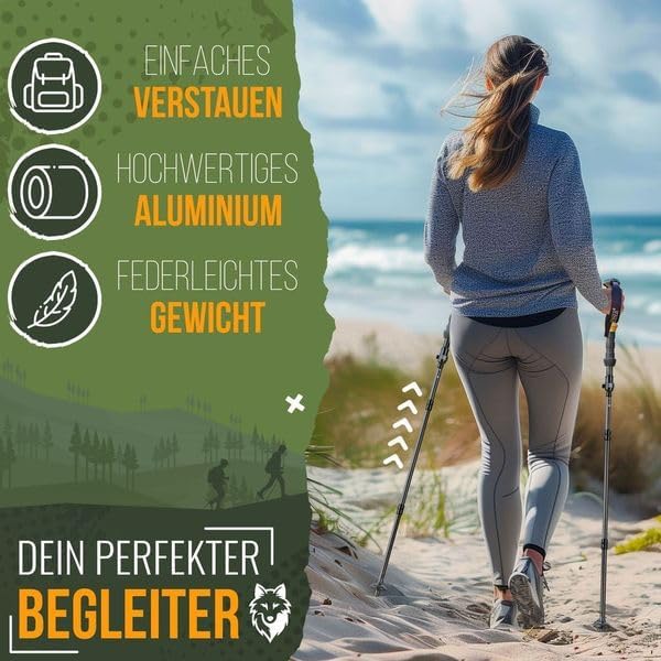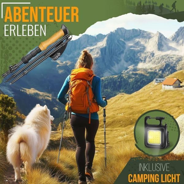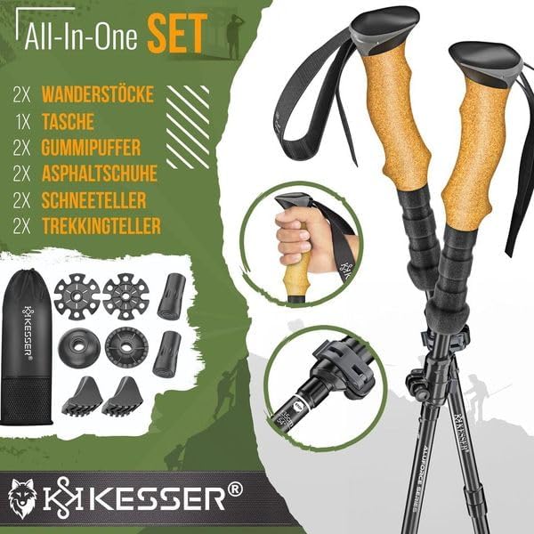 KESSER Wandelstokken, opvouwbaar, telescopisch, met kurkgreep, lichte en stabiele trekkingstokken voor je outdoor-avontuur, verstelbare lengte 105-135 cm, materiaal aluminium en carbon