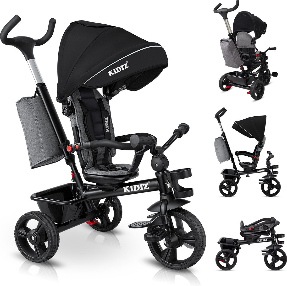 KIDIZ driewieler 5in1 met duwstang voor directe besturing en stuursysteem, multifunctioneel en groeit met je kind mee, 360° draaibare zitting en inklapbare zonnekap.