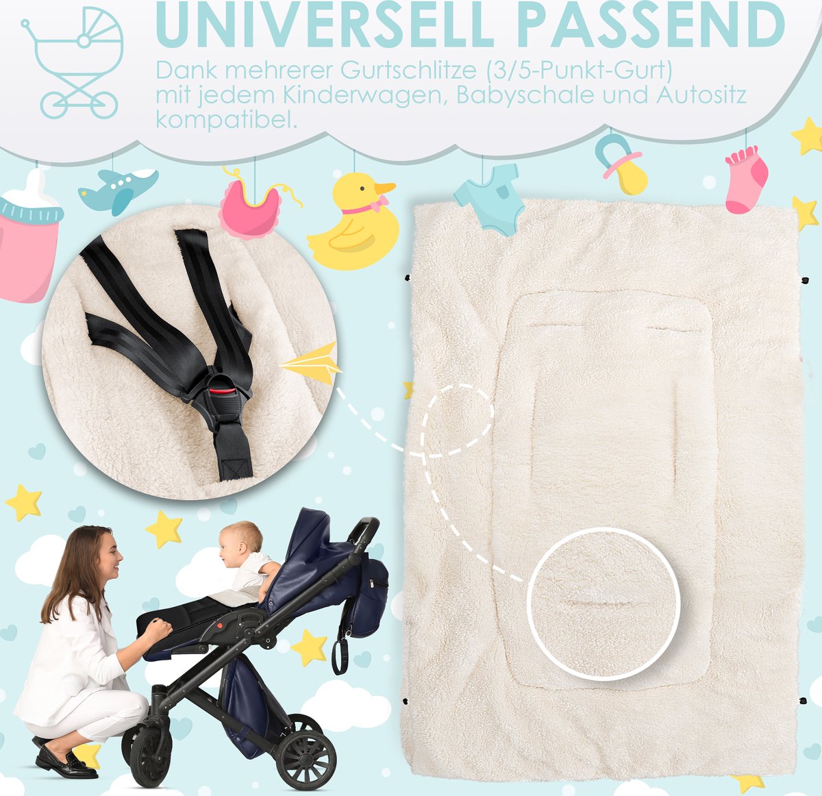 UNIVERSEEL: De babyvoetenzak van 95 cm is geschikt voor alle autostoeltjes, kinderwagens of buggy-modellen - ongeacht het merk.