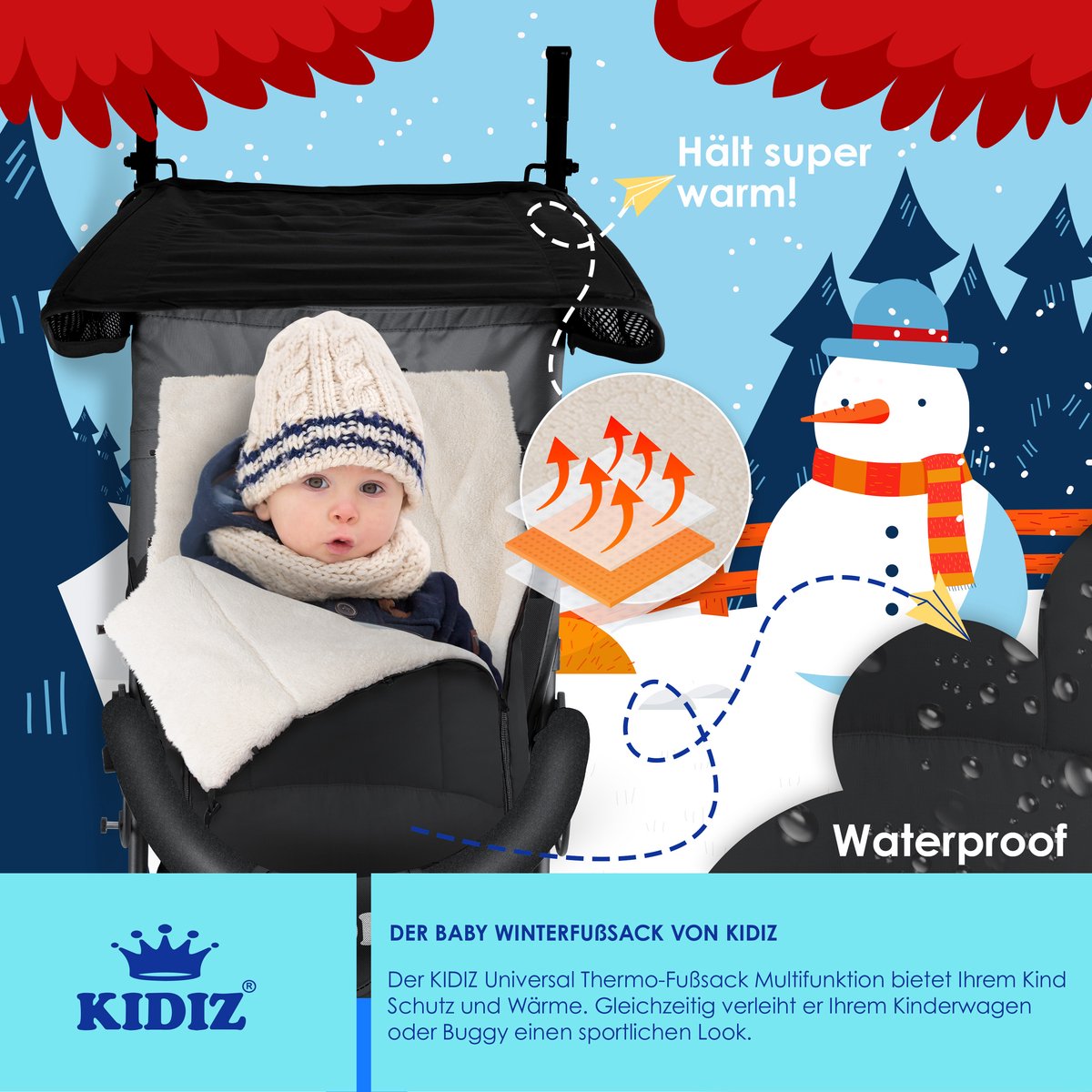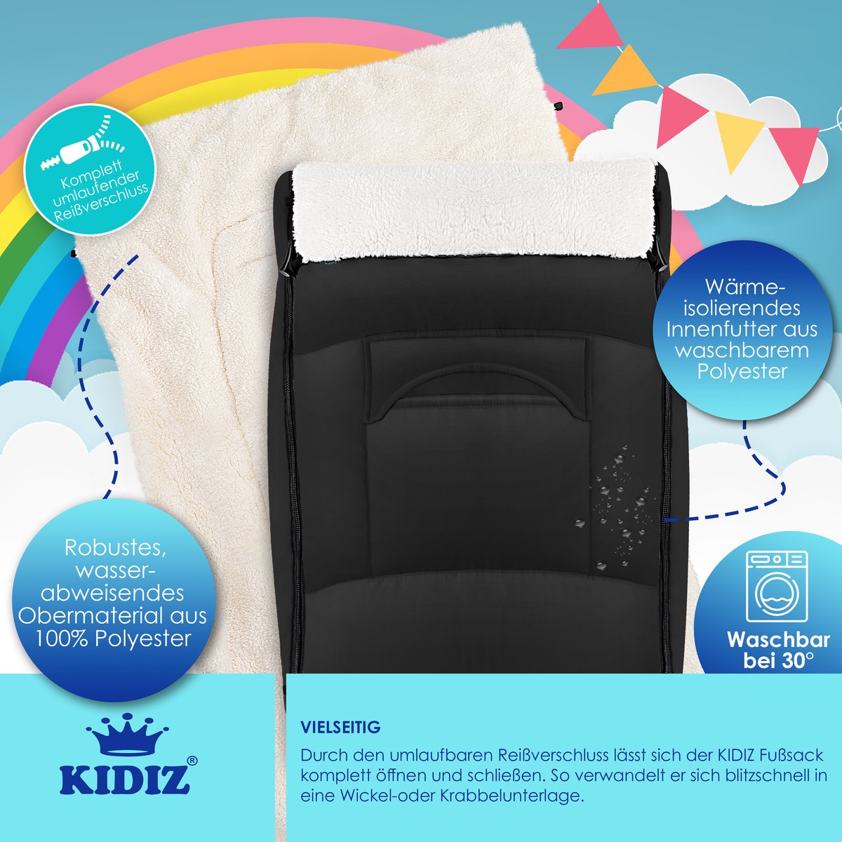 KIDIZ® Universele Voetenzak voor Baby's Universele Voetenzak Winter Voetenzak voor Autostoel en Buggy met Ritssluiting Knuffelzak Babydeken Kinderwagen Wasbaar Sluitbare Hoofdsteun, Zak, Geschikt voor alle Kinderwagens