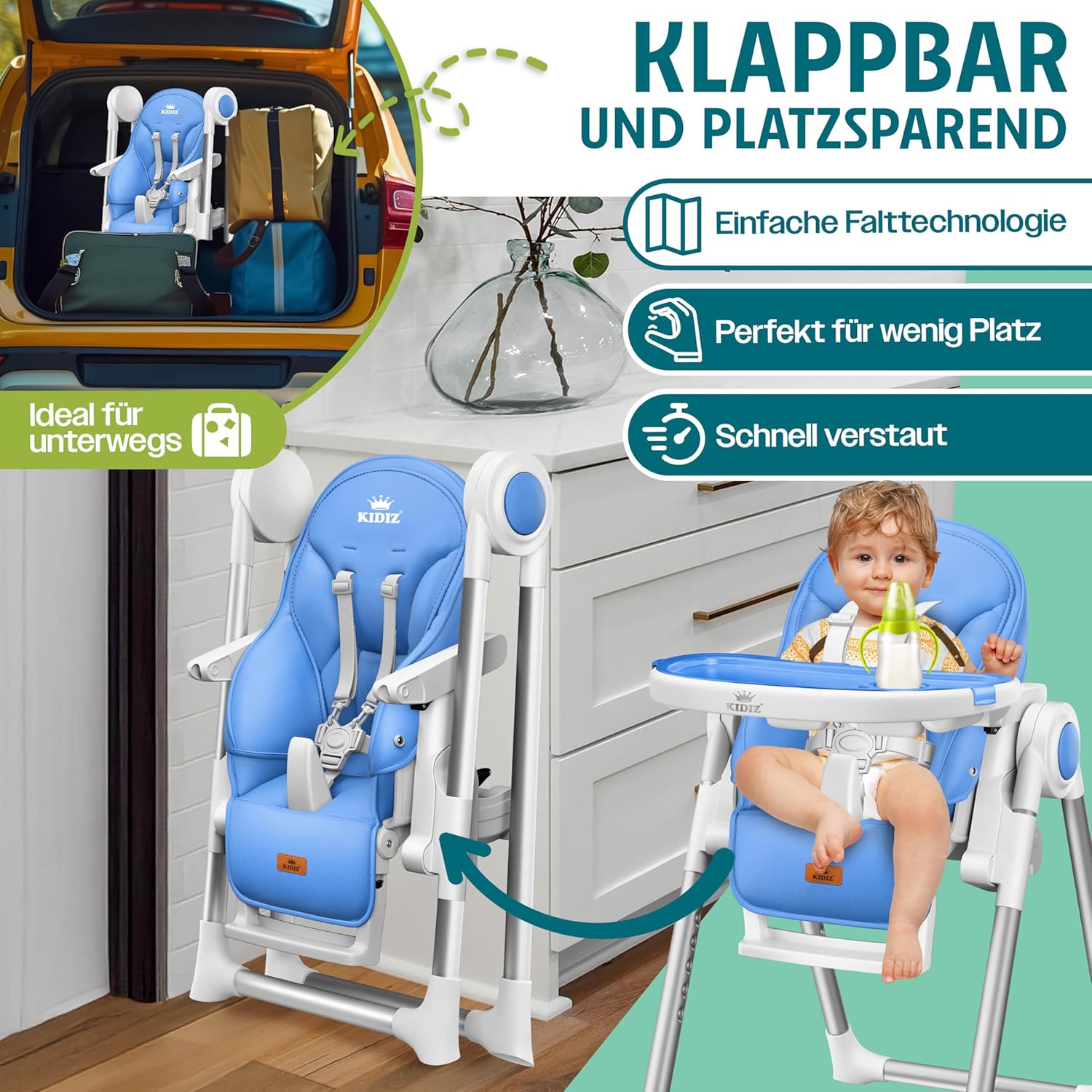 Comfortabel, veilig en flexibel: de 5-punts veiligheidsgordel beschermt je baby betrouwbaar. Dankzij het ruimtebesparende vouwmechanisme kan de kinderstoel snel worden opgeborgen of vervoerd – ideaal voor kleine woningen of onderweg.