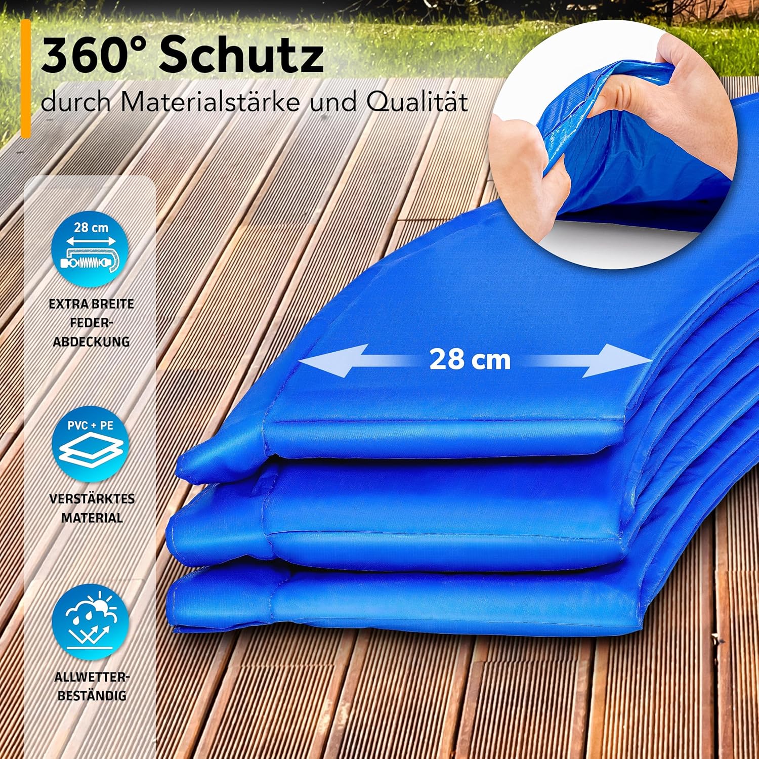 • Geschikt voor alle weersomstandigheden: de circa 25 cm brede bekleding van de Kiduku trampoline randafdekking is bestand tegen zonlicht, is uv-bestendig, bestand tegen regen en ook vorst op koude winterdagen. Het gaat om een permanente afdekking.