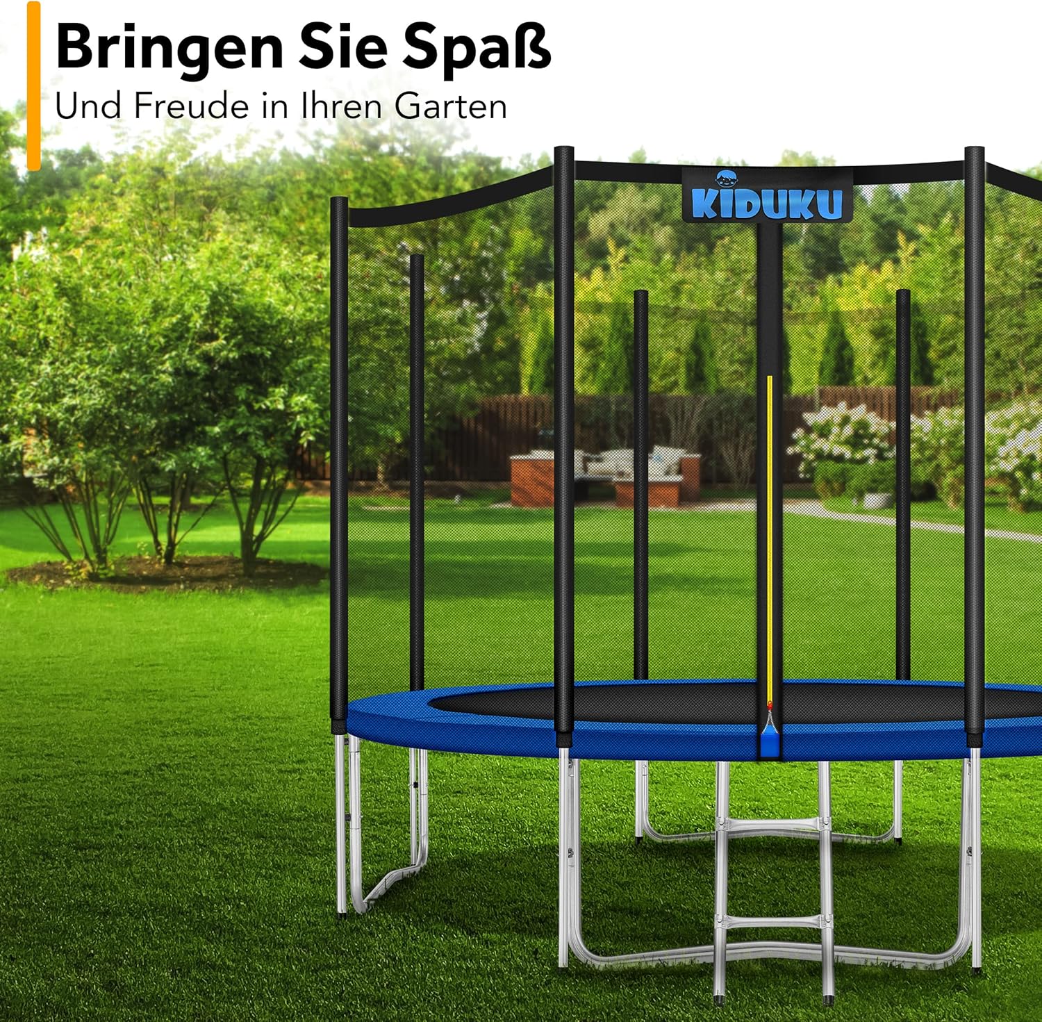 • Eenvoudige montage: uitpakken, overspannen, uitlijnen, vastbinden. Het vastbinden gebeurt aan de veren. Bij vervuiling kan de Kiduku trampoline randafdekking met elke in de handel verkrijgbare reiniger van vuil worden ontdaan.