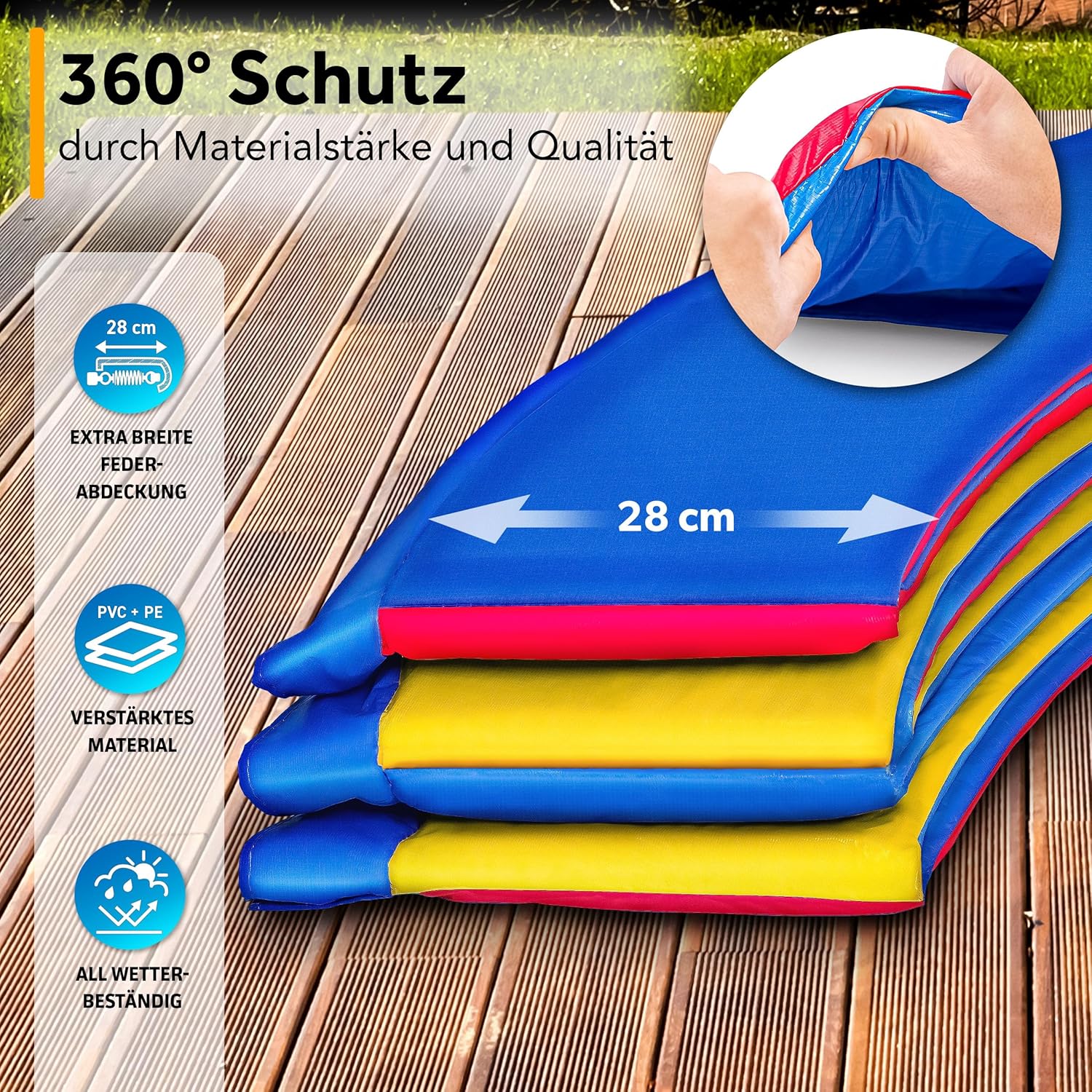 Het ideale accessoire voor je bestaande trampoline: de KIDUKU trampoline-randafdekking, gevuld met 1,8 cm dik, zeer dicht EPE-schuim, beschermt betrouwbaar tegen letsel bij het springen op de trampoline. Met name de veren worden volledig bedekt door de bekleding ter bescherming tegen ernstig letsel.