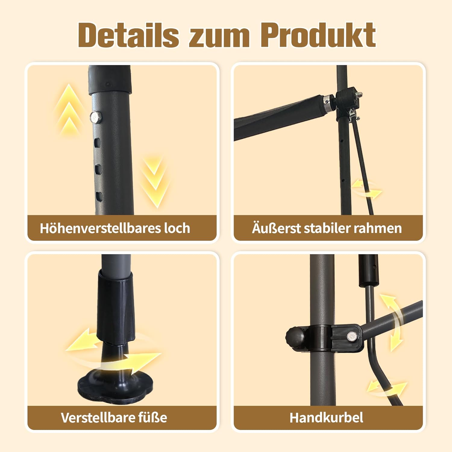 Verkrijgbaar in verschillende maten: deze klemluifel met handslinger heeft een breedte van 150/300/350 cm naar keuze en een hoogte van 210cm-300cm kan worden aangepast, die flexibel kan worden aangebracht op balkons, binnenplaatsen, tuinen, kassen en ramen naar behoefte
