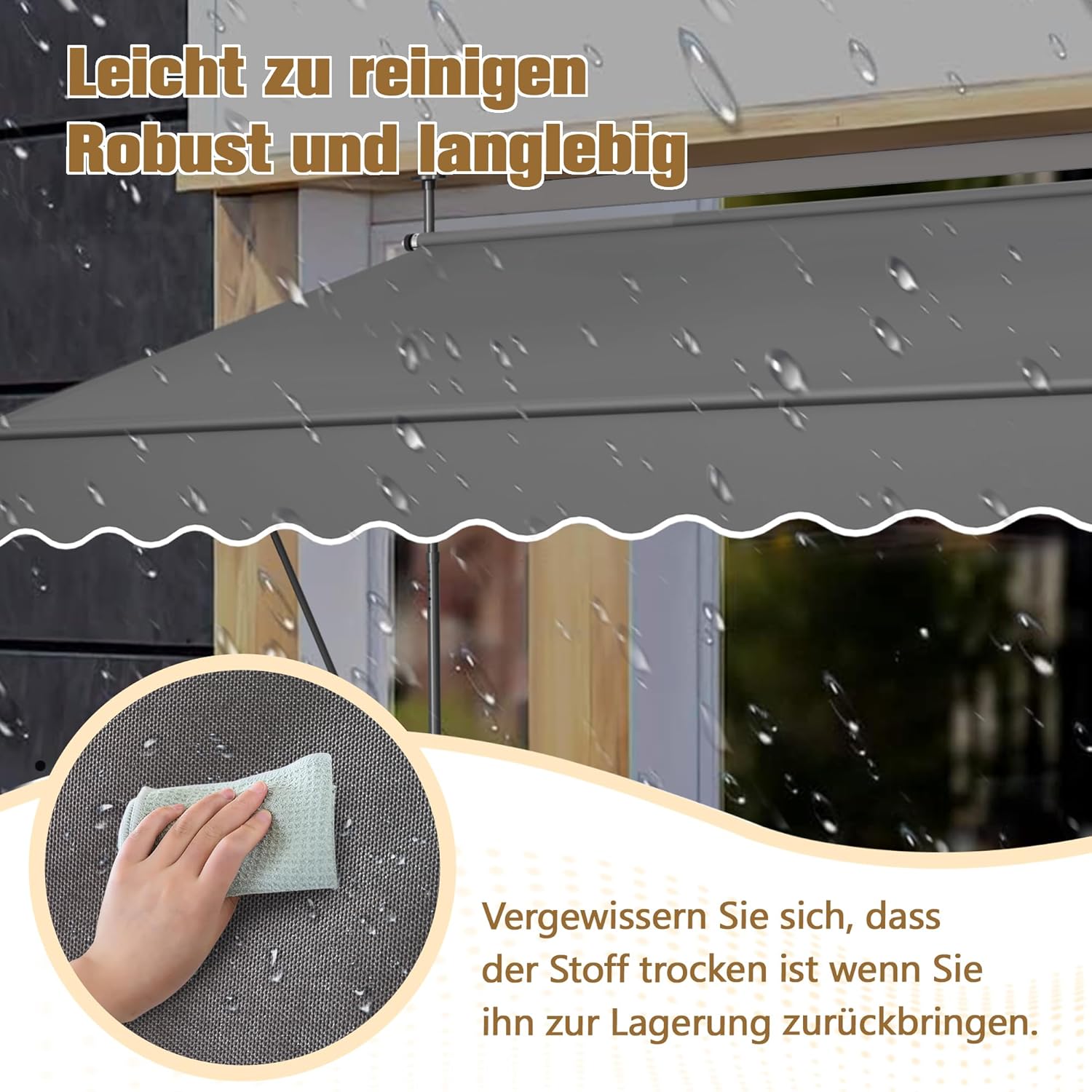 Zonwering en waterdicht: de stof van de klemluifel is gemaakt van 100% polyester. Hij is zonbestendig, waterdicht, gemakkelijk te reinigen en beschermt je privacy goed. Deze luifel blijft ook bij slechte weersomstandigheden betrouwbaar en veilig