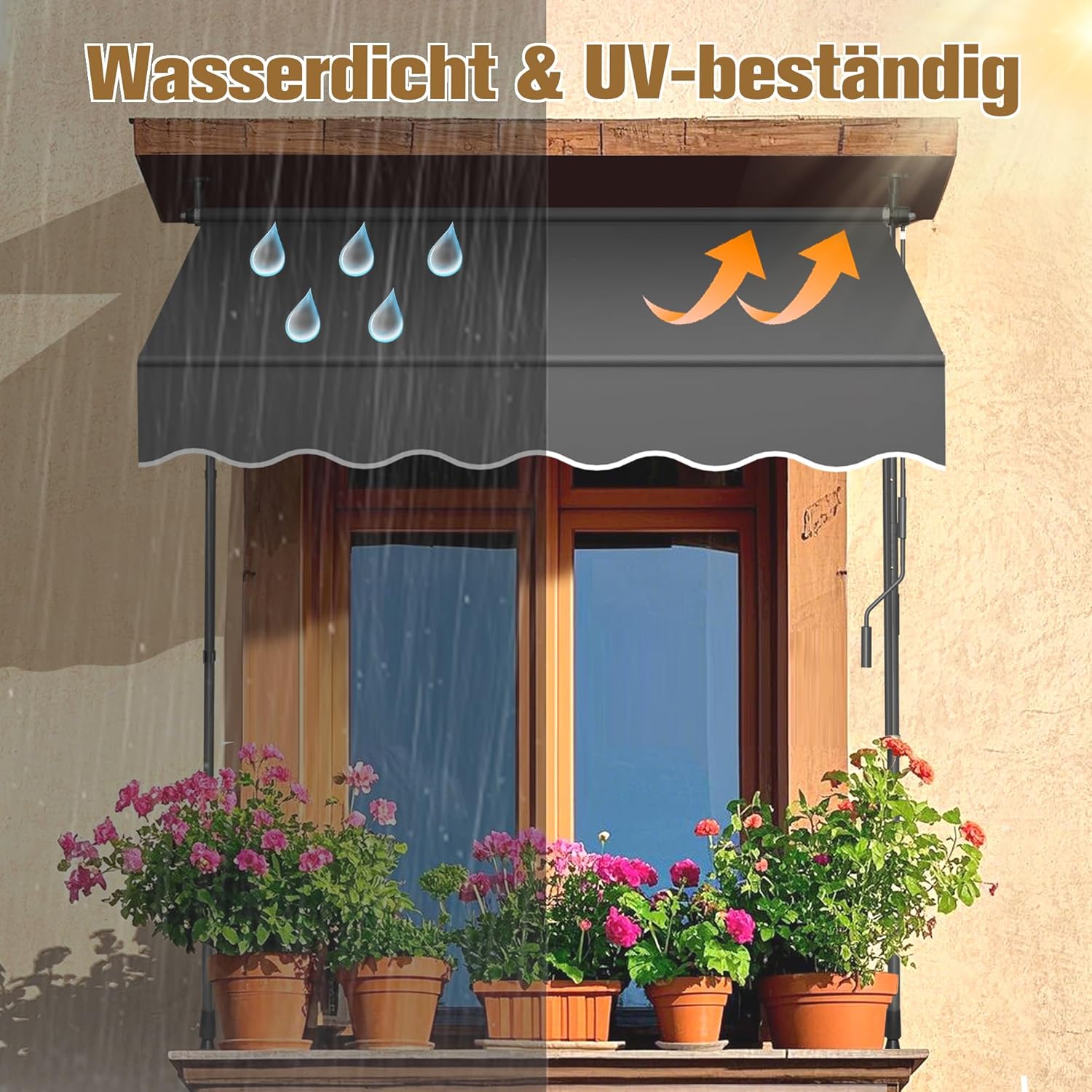 Eenvoudige montage zonder boren: dankzij de praktische klemstructuur is de installatie van de luifel snel en eenvoudig, zonder boren of extra gereedschap. In slechts 30 minuten kun je je luifel monteren, zonder de muur te beschadigen