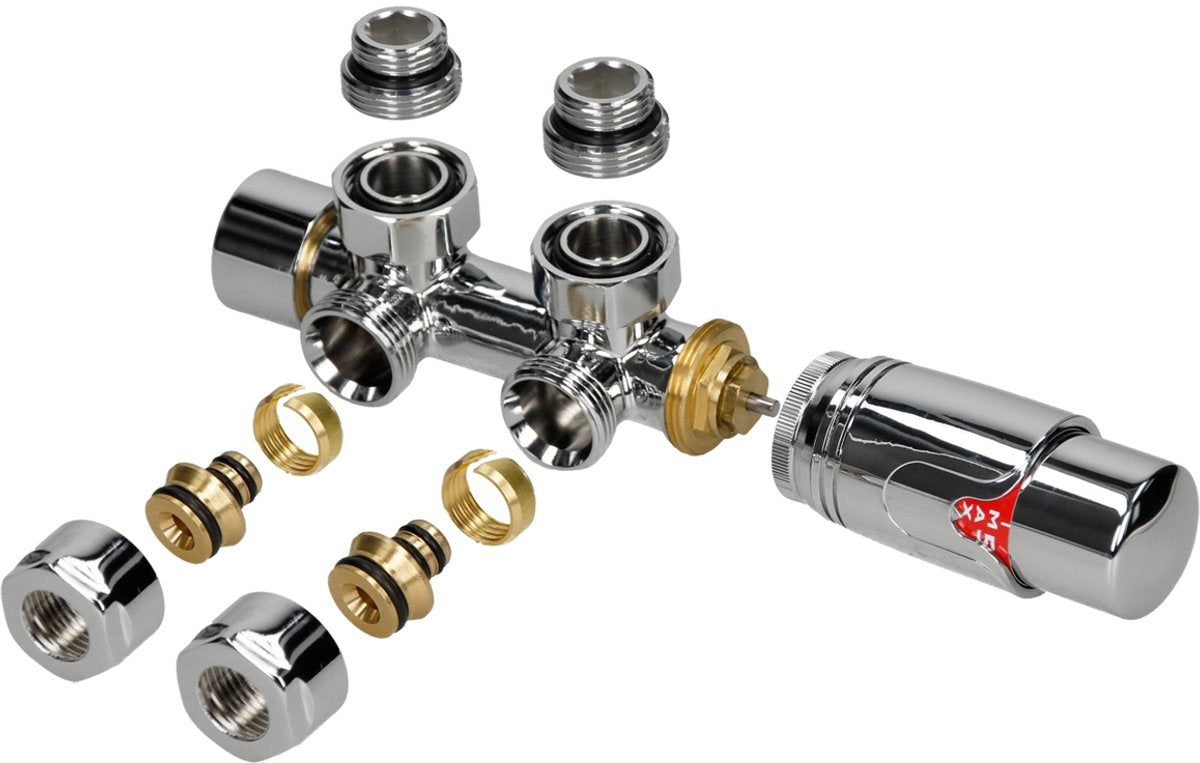 Hoogwaardige aansluitfitting voor radiatoren met middenaansluiting.