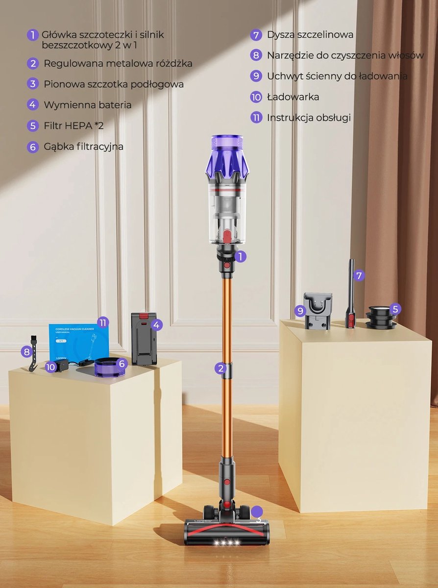 - Geniet van de vrijheid van draadloos reinigen met de krachtige 500W motor, die zorgt voor een diepe en grondige reiniging zonder beperkingen van snoeren.