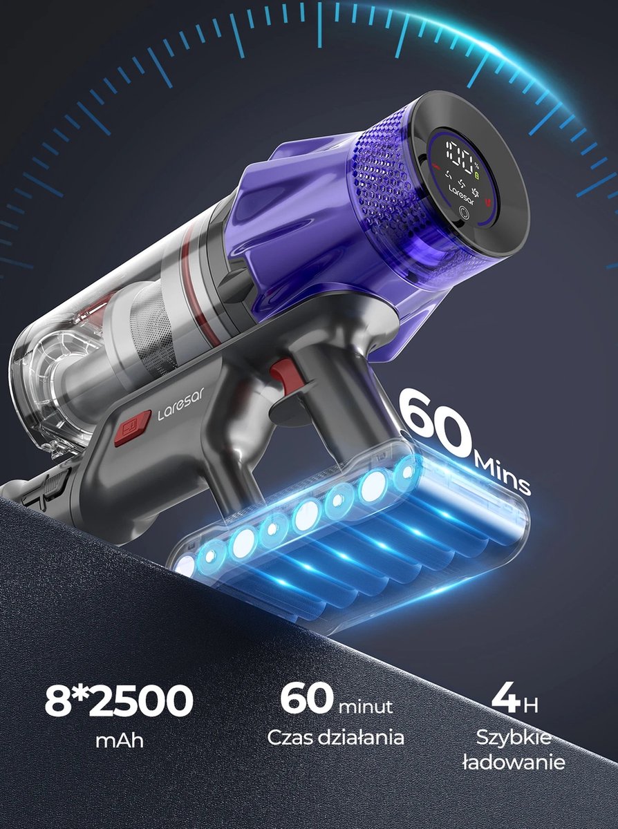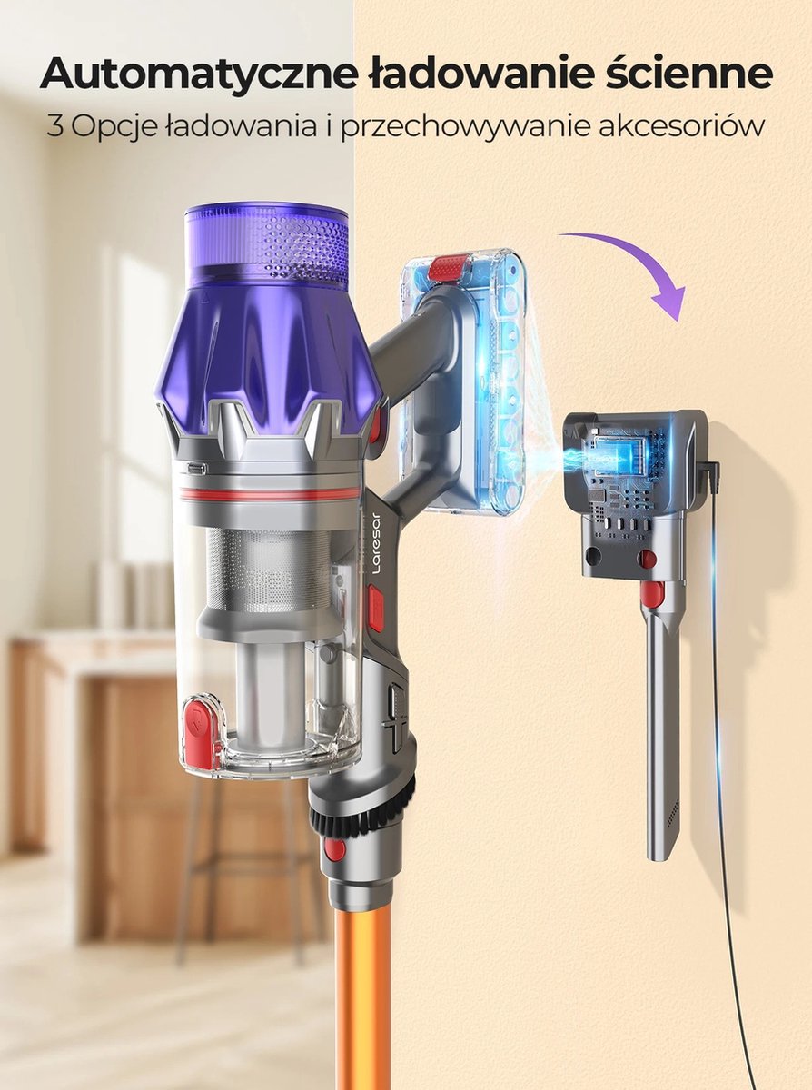 Ontdek de ultieme reinigingsoplossing met de Laresar V7 steelstofzuiger. Uitgerust met geavanceerde functies en een krachtige motor, biedt deze stofzuiger een grondige en moeiteloze reiniging, waar je ook bent.