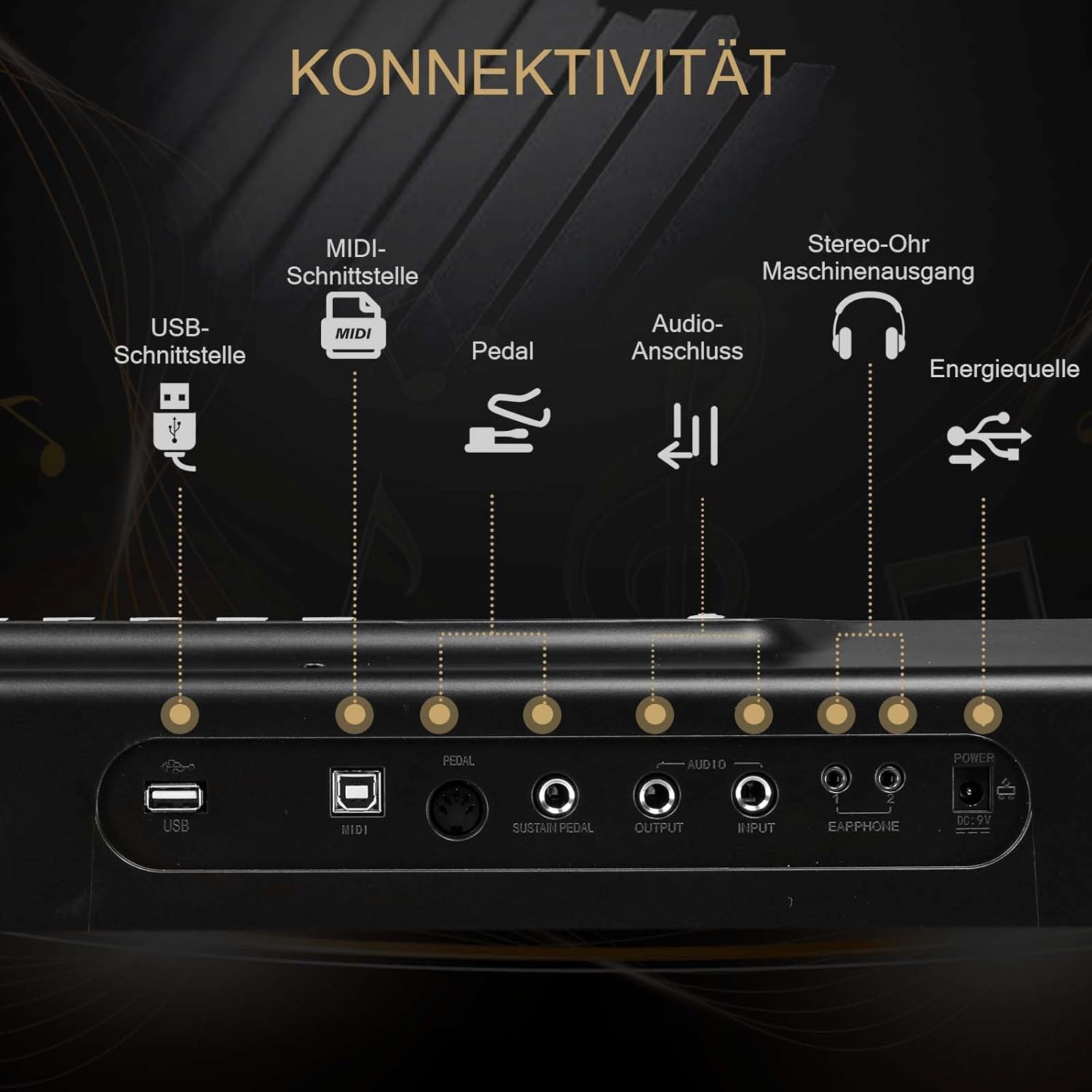 【Multifunctioneel】: het pianotoetsenbord beschikt over 32 akkoordmuziek/70 demoliedjes/200 ritmen/200 tonen. Hij beschikt ook over een opnamefunctie. Beginners kunnen hun uitvoering opnemen en herhaaldelijk spelen en oefenen, het perfecte instrument voor beginners