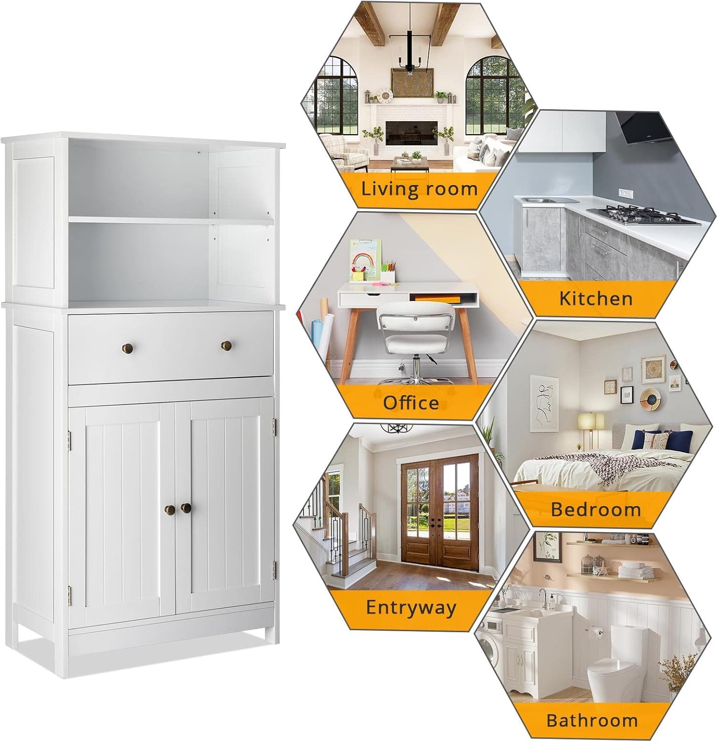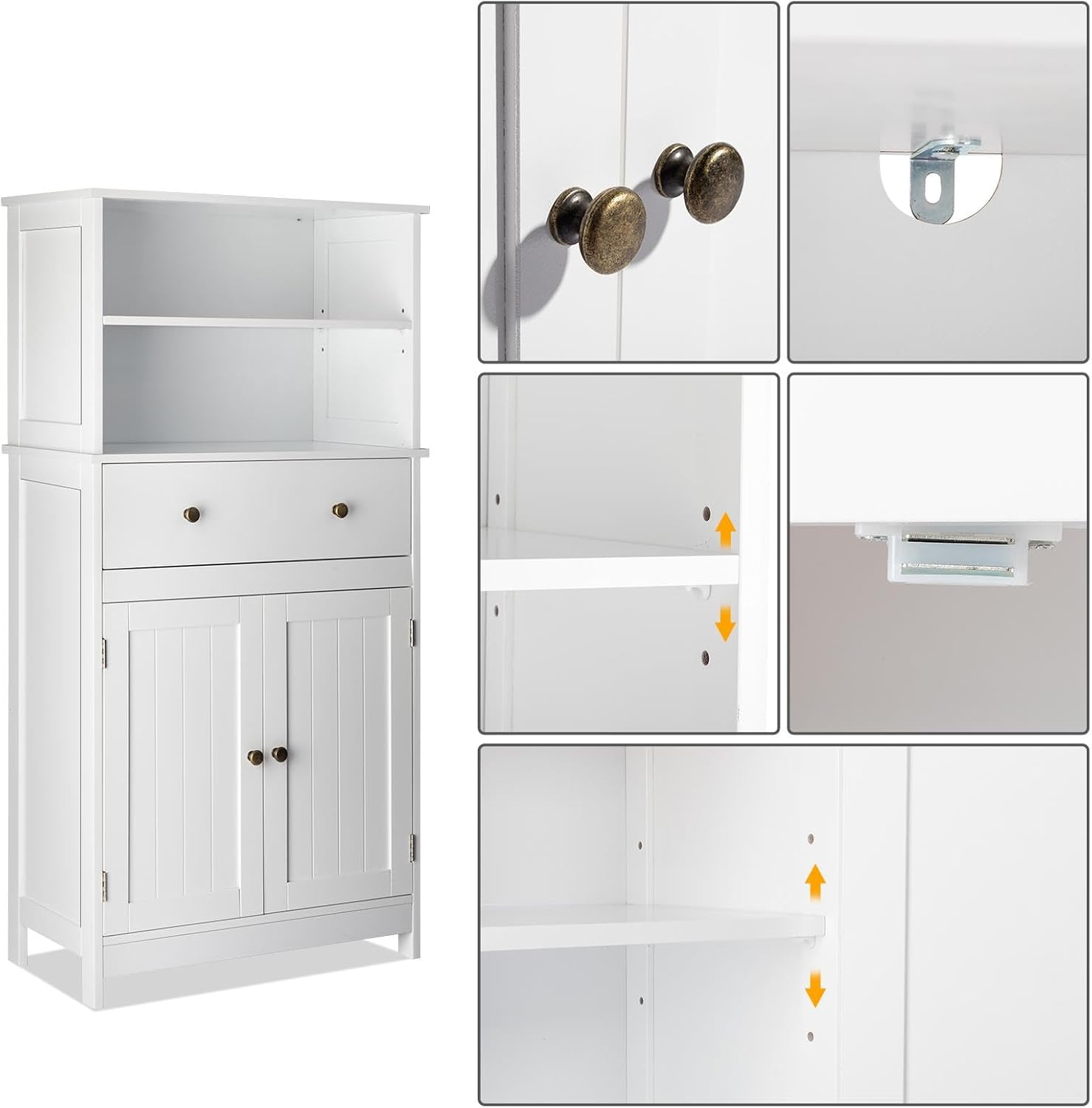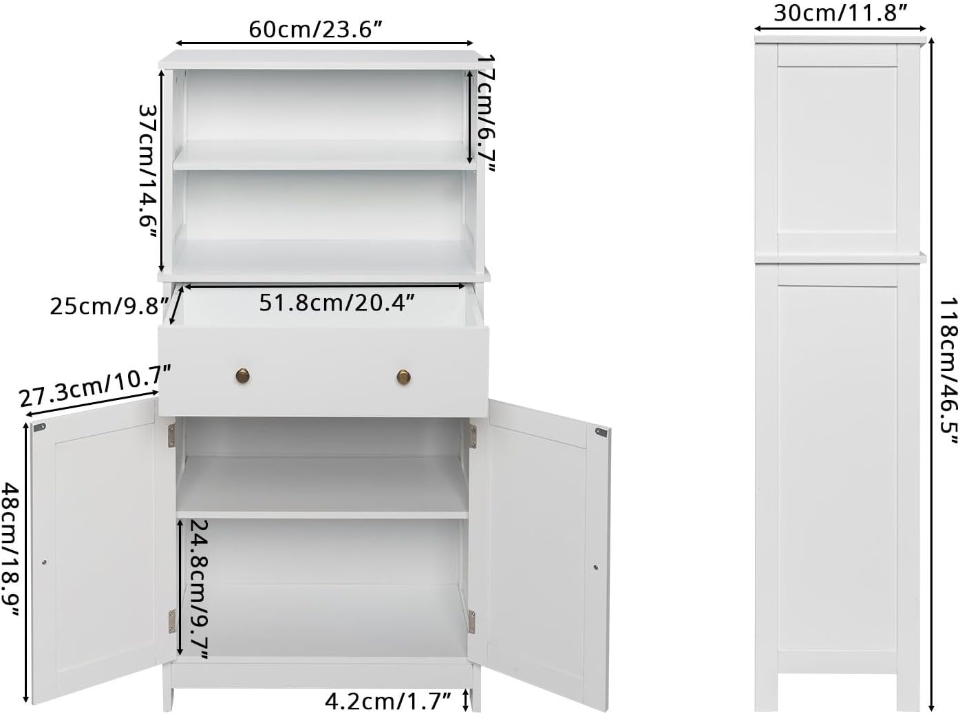 Geschikt voor meerdere scenario's: deze vrijstaande kast kan niet alleen als badkamerkast, maar ook als keukenrek, als tentoonstellingsrek in de woonkamer, als boekenkast en boekenkast in de werkkamer of kantoor of als kast in de slaapkamer of kledingkast worden gebruikt