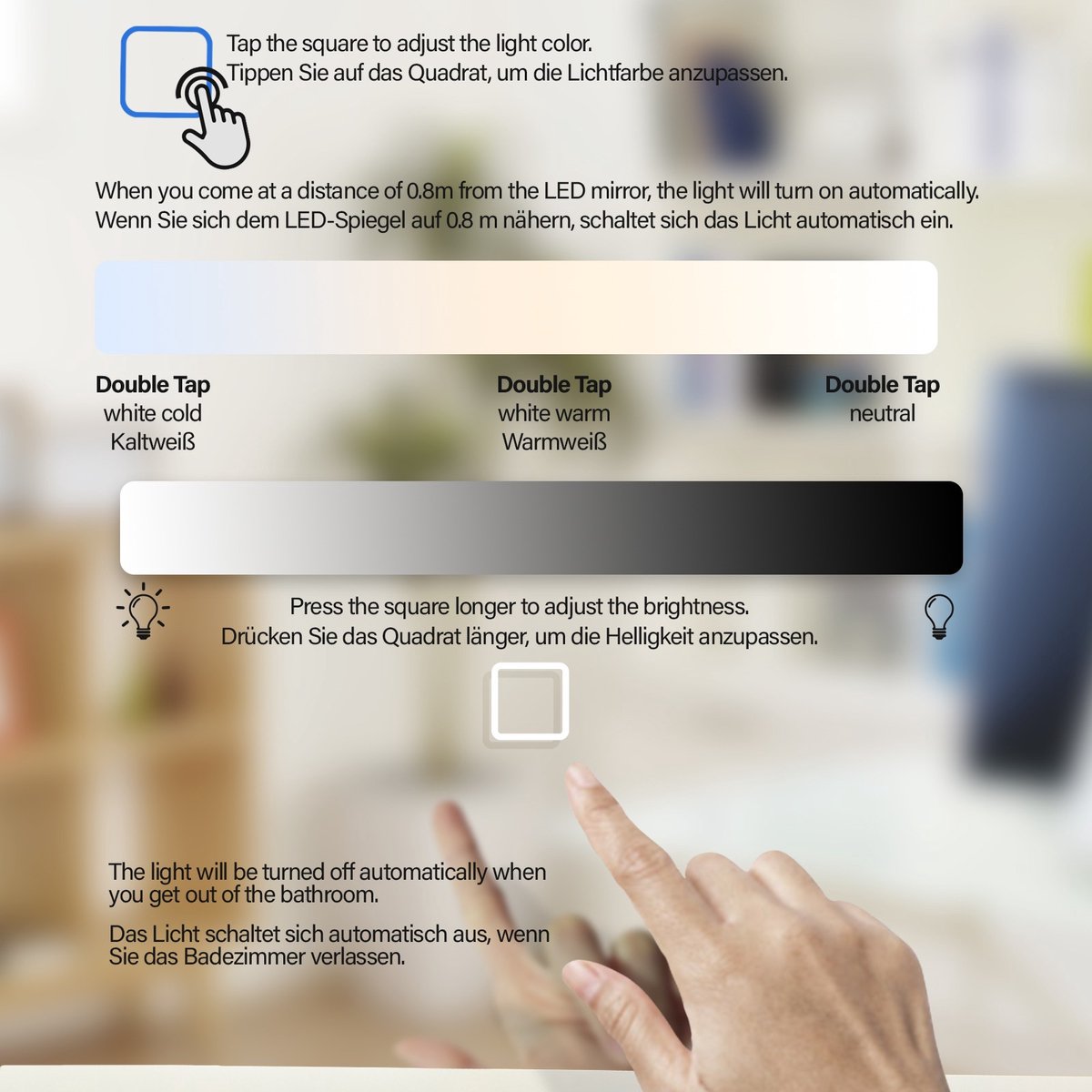 Stap binnen in de toekomst van badkamerdesign met onze ultramoderne LED spiegel. Deze strakke en heldere toevoeging combineert moeiteloos moderne esthetiek met baanbrekende technologie. Met een simpele aanraking verander je de ambiance van je badkamer, dankzij de handige touch-bediening die het mogelijk maakt om te schakelen tussen warm, koel of neutraal LED-licht. Met de geheugenfunctie onthoudt de spiegel zelfs jouw laatste instelling, zodat je altijd de perfecte sfeer kunt creëren.