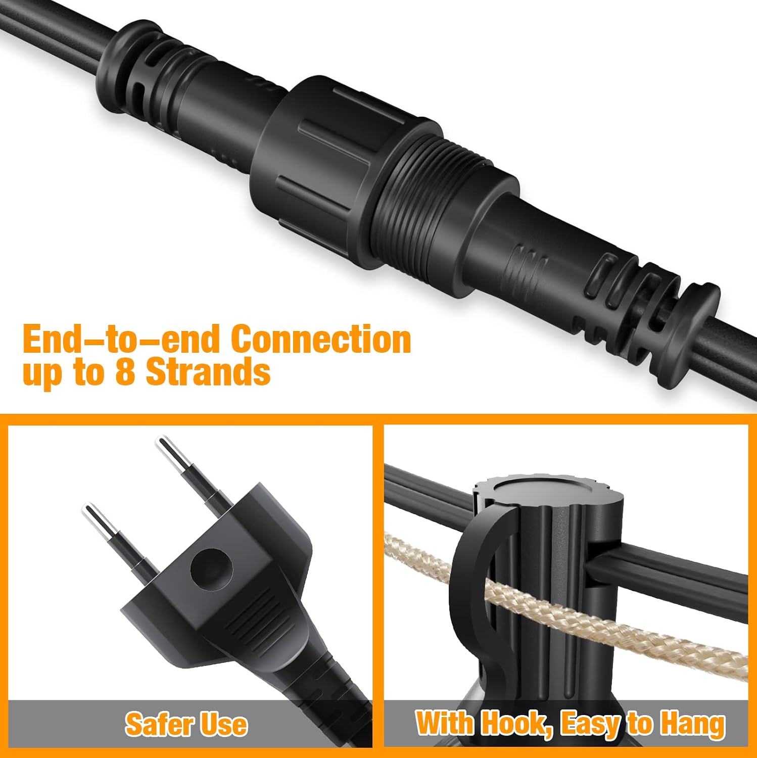 [Nieuwe upgrade] Ten eerste gebruikt de SUWIN G40 ledlampen met hoge lichtdoorlatendheid om conventionele wolfraamlampen te vervangen. Bovendien worden val- en slijtvaste kunststof lampen gebruikt in plaats van breekbare glazen lampen. De verbeterde hangende lichtketting is energiezuiniger en van betere kwaliteit.