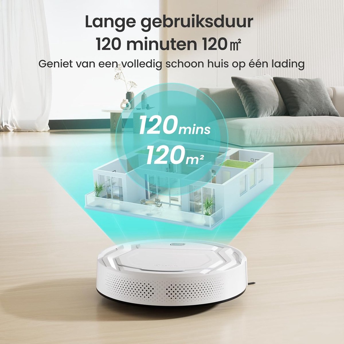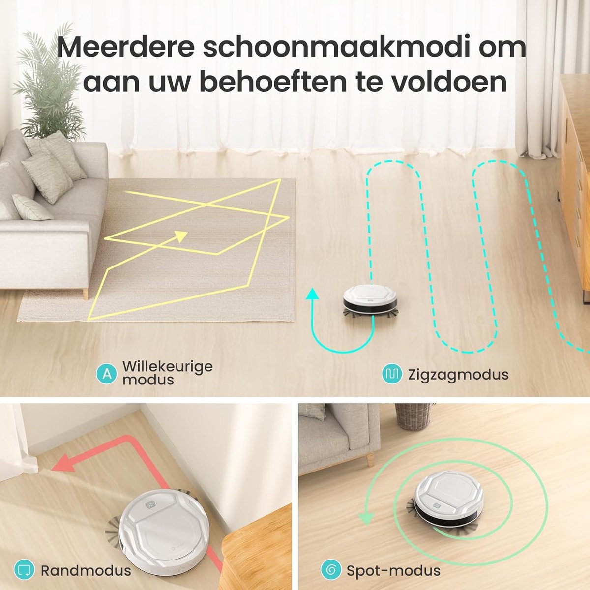 Vier Reinigingsmodi: De robotstofzuiger biedt 4 reinigingsmodi, waaronder automatisch reinigen, randen reinigen en zigzag reinigen. Hiermee kun je de reinigingsmodus aanpassen aan jouw specifieke behoeften.