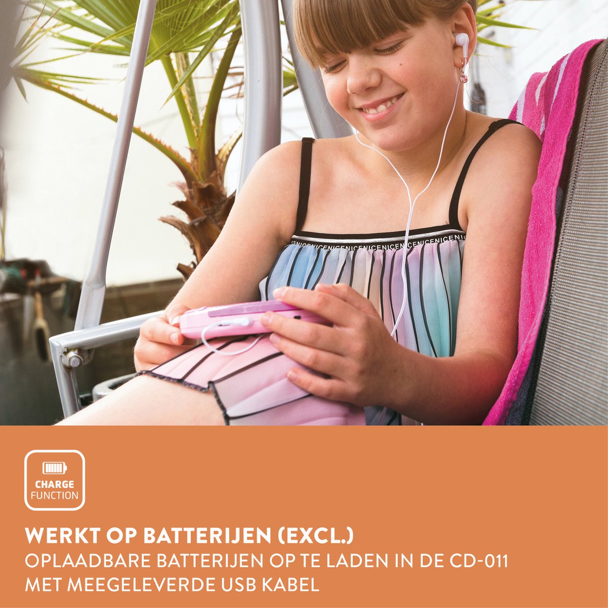 De Lenco CD-011PK werkt zowel op batterijen als op stroom. De CD-speler beschikt ook over een oplaad circuit voor accu's (de accu's worden niet meegeleverd). Als de CD-speler langer dan 30 seconden geen muziek afspeelt, schakelt hij zich vanzelf uit. Zo spaar je de batterij. Met één druk op de knop kun je de Lenco CD-011PK weer gebruiken.